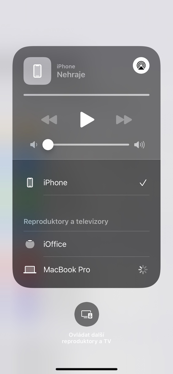 - Zde už se pak ve spodní části obrazovky zobrazí seznam dostupných zařízení pro AirPlay.