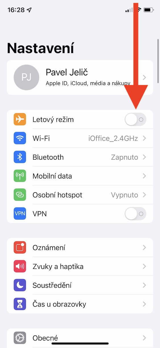 - iPhone s Face ID: přejeďte prstem z pravé horní části displeje směrem dolů;