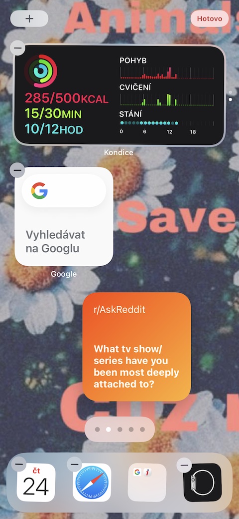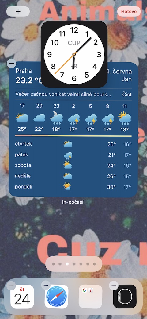 Pokud chcete mít na ploše vašeho iPhonu kromě widgetů také ikonky nejrůznějších aplikací, je potřeba dát si pořádně záležet na rozmístění daných widgetů. Samotné přidání widgetu na plochu je jednoduché – stačí dlouze podržet plochu vašeho iPhonu a poté v levém horním rohu klepnout na „+“. Vyberte widget, který chcete umístit na plochu, ale namísto klepnutí na tlačítko Přidat widget daný widget zkrátka jen podržte a začněte jej táhnout směrem do strany. Takto můžete widgetem zkušebně pohybovat z místa na místo a ujistit se, že bude opravdu pasovat.