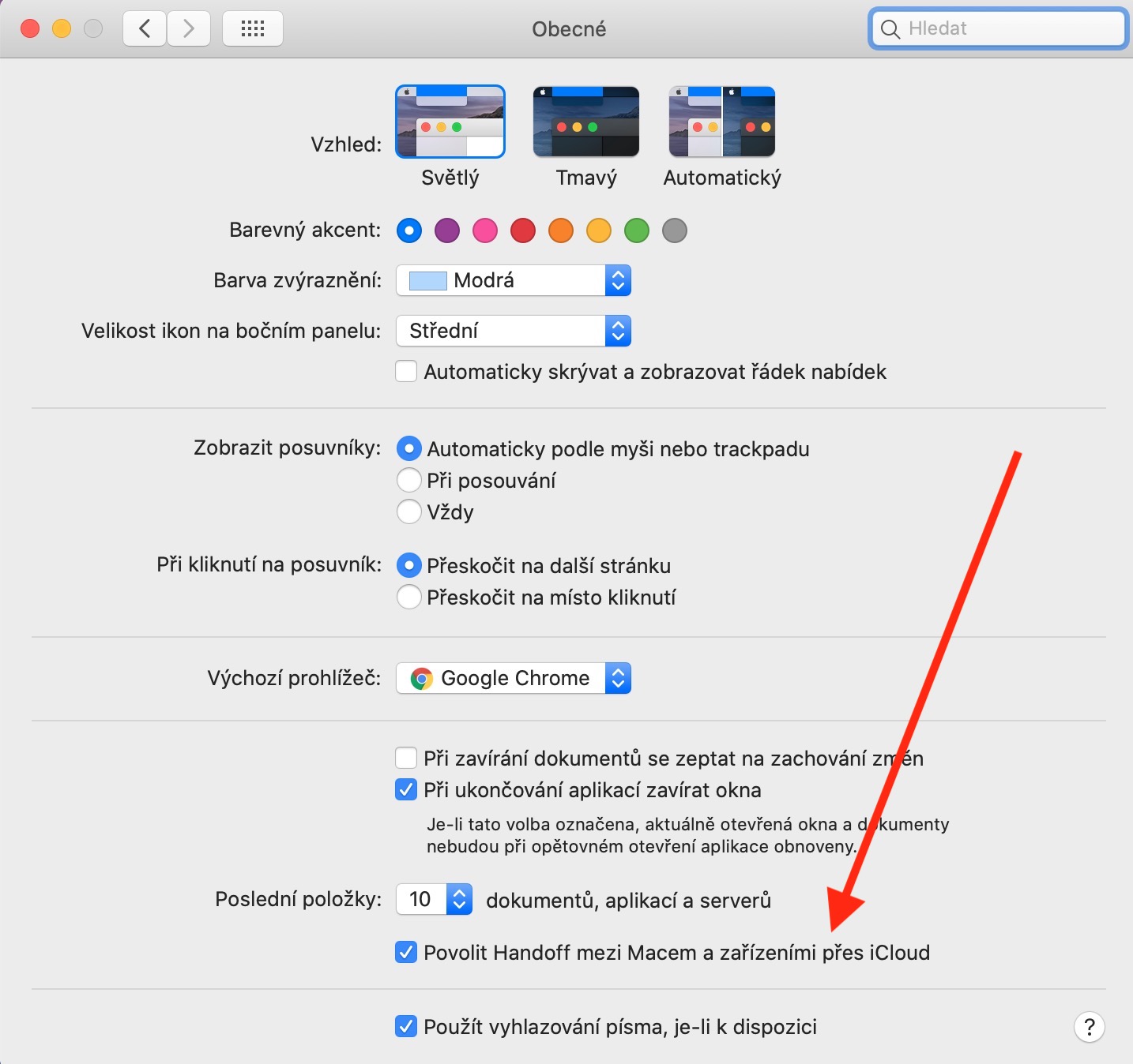 Tento tip je určen spíše začátečníkům a méně zkušeným uživatelům – předpokládáme totiž, že ostřílení jablíčkáři funkci Handoff důvěrně znají. Jedná se o funkci, která vám umožní plynule pokračovat v používání jedné a té samé aplikace napříč více Apple zařízeními. Pokud například pročítáte webovou stránku na Safari v iPadu, můžete v jejím čtení pohodlně pokračovat na vašem Macu nebo iPhonu. Jediné, co je k tomu zapotřebí, je aktivace funkce Handoff. Tu na Macu provedete tak, že v levém horním rohu kliknete na Menu -> Předvolby systému -> Obecné. Na iPhonu či iPadu můžete funkci Handoff aktivovat v Nastavení -> Obecné -> Airplay a Handoff, kde aktivujete položku Handoff.