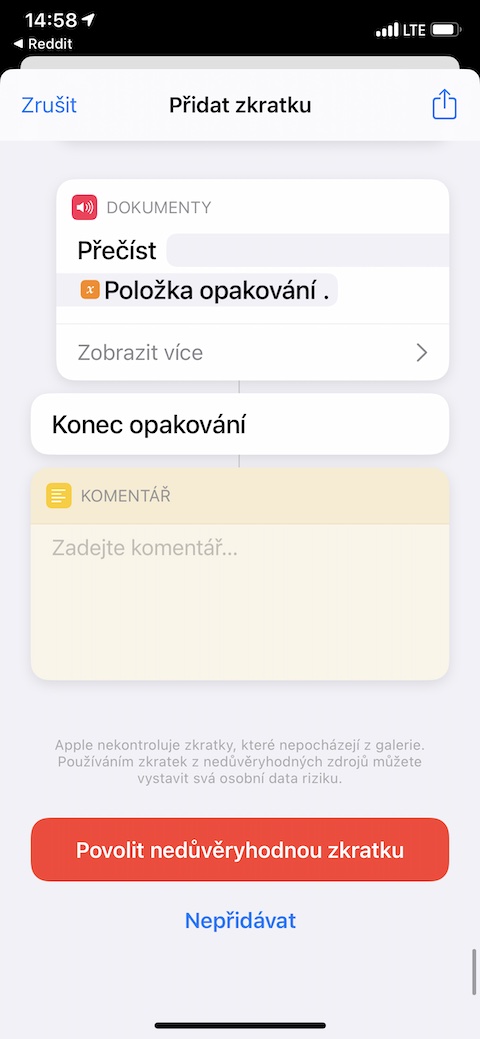 Se závěrem týdne vám opět přinášíme přehled dalších užitečných zkratek pro iOS. Než se pustíte do jejich instalace a zkoušení, připomínáme, že je potřeba každou zkratku otevřít v prostředí prohlížeče Safari na iPhonu, do kterého ji budete chtít nainstalovat. Ujistěte se také, že jste v Nastavení -> Zkratky povolili používání nedůvěryhodných zkratek.