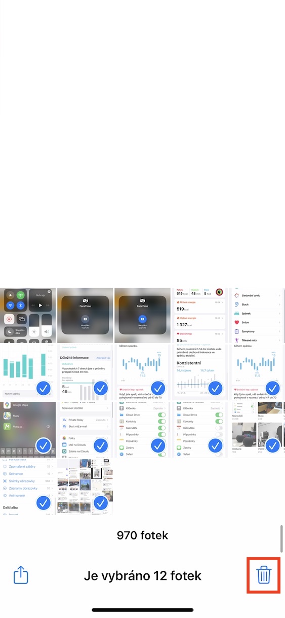Odstraňte nepotřebné fotografie a snímky obrazovky