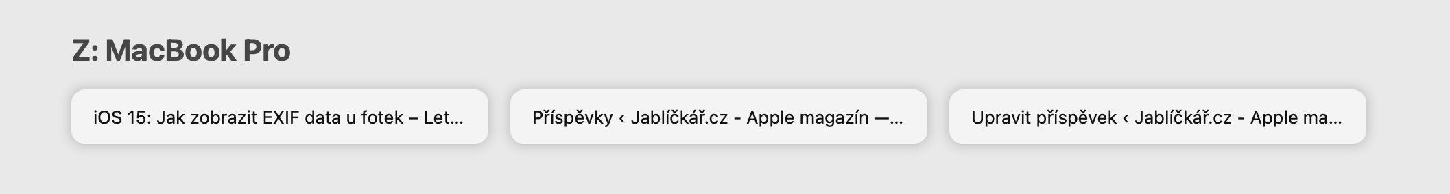 Podobně jako v případě aplikací můžete jednoduše pokračovat v prohlížení webových stránek napříč vašimi zařízeními, tedy pokud využíváte Safari. Jestliže se tedy na Macu ocitnete na nějaké webové stránce v Safari a rozhodnete se pokračovat v jejím prohlížení na iPhonu, tak stačí, abyste otevřeli přepínač aplikací, a poté dole klepnuli na panel se Safari z Macu. Chcete-li tuto akci provést na Macu, tak stačí, abyste se přesunuli na úvodní stránku Safari, a poté níže lokalizovali sekci Z: Název zařízení, tedy například Z: MacBook Pro. Popřípadě můžete, stejně jako například u Poznámek, klepnout na Safari s ikonou iPhonu v Docku.