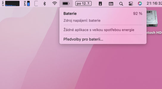 macOS 12 Monterey: Jak aktivovat zobrazení stavu baterie v horní liště