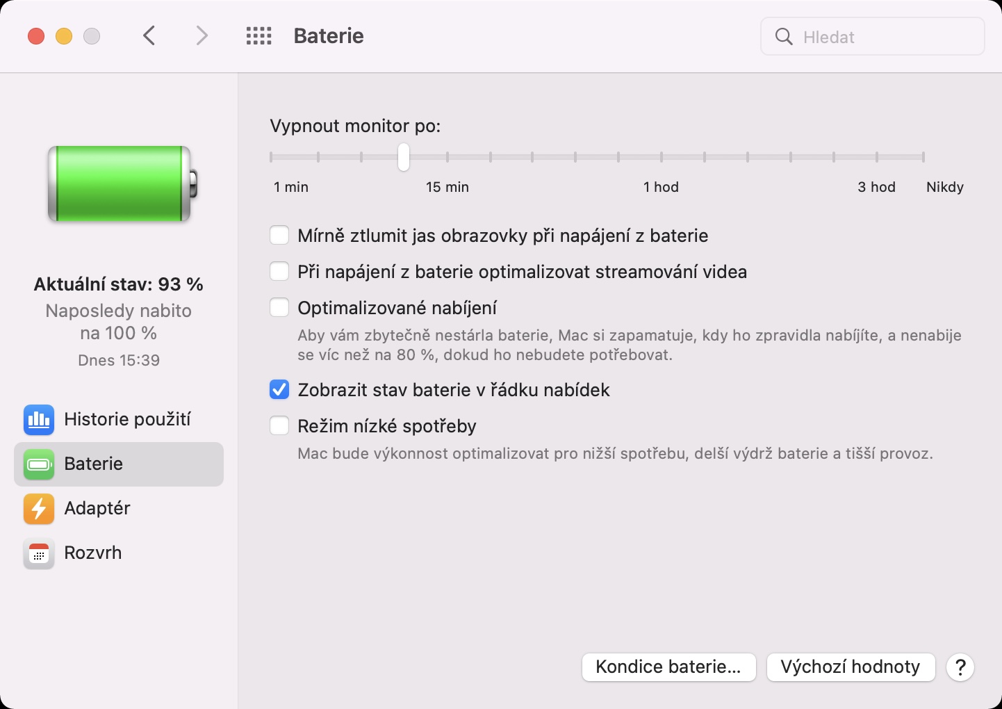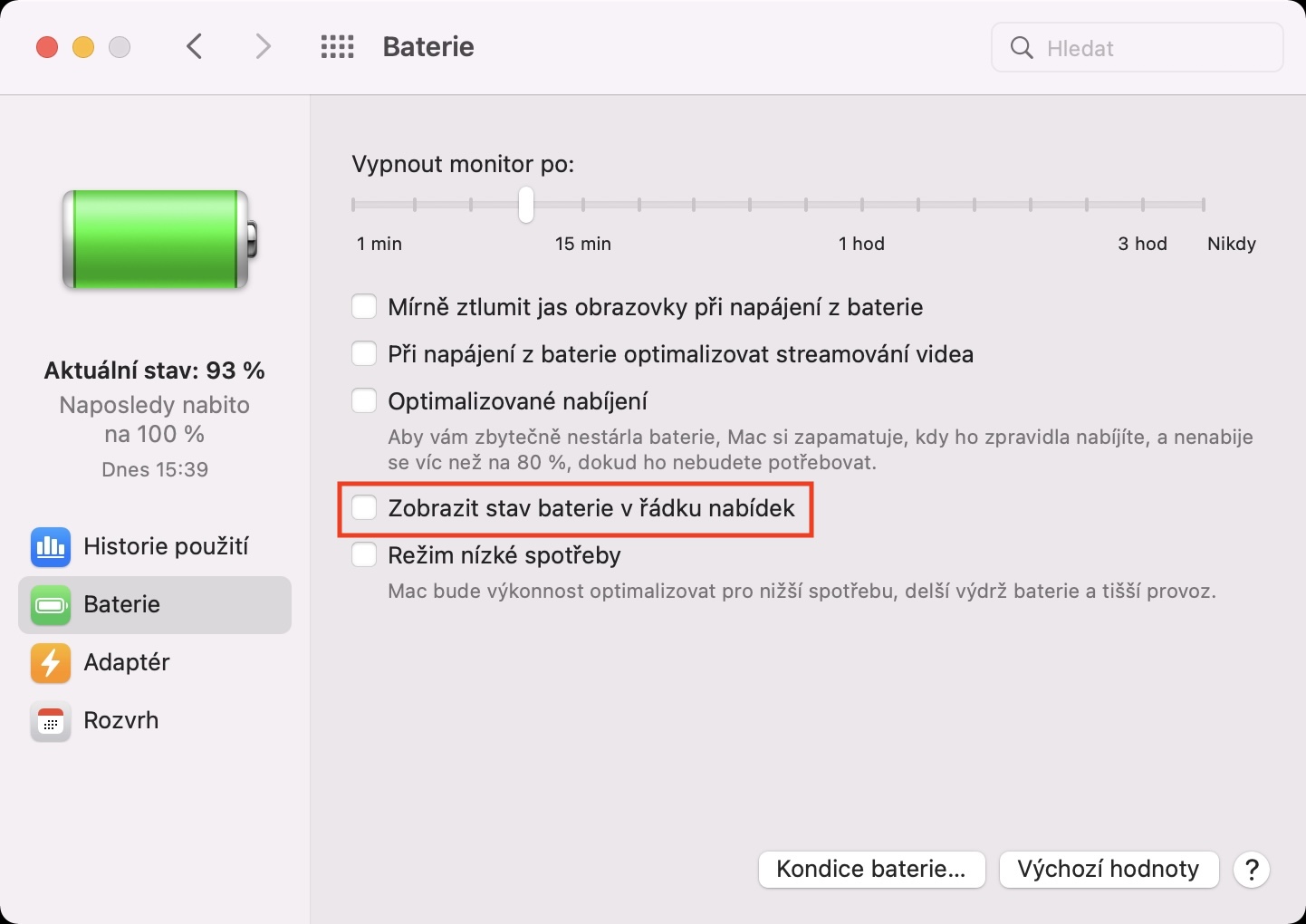 - Pak už jen stačí, abyste zaškrtnuli možnost s názvem Zobrazit stav baterie v řádku nabídek.