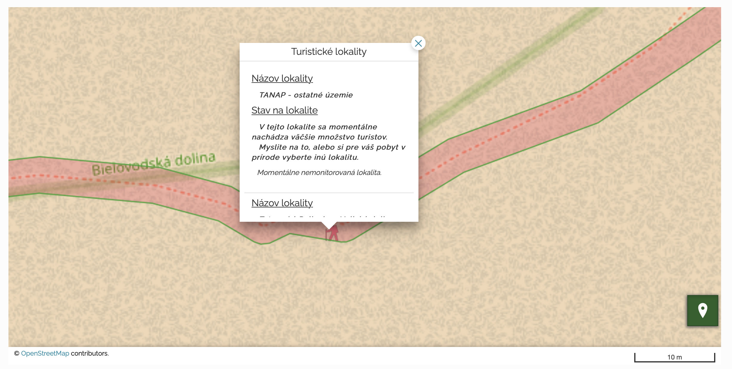 Jedná se o mapu, která je každý den v 10:00 aktualizována a ukazuje jak velký zájem je v dnešní den o danou lokalitu. Mapa ukazuje trojici barev, od zelené, přes oranžovou až po červenou. S tím, že zelená barva ukazuje minimální počet návštěvníků dané oblasti, naopak červená barva ukazuje aktuálně výrazný turistický zájem o danou lokalitu a správci národních parků doporučují se podobným místům vyhnout a nechat jejich návštěvu na dny, kdy o ně bude menší zájem. Za projektem stojí přímo Štátna ochrana prírody Slovenskej republiky a jedná se rozhodně o zajímavý počin, díky kterému si užijete přírodu nikým nerušeni.