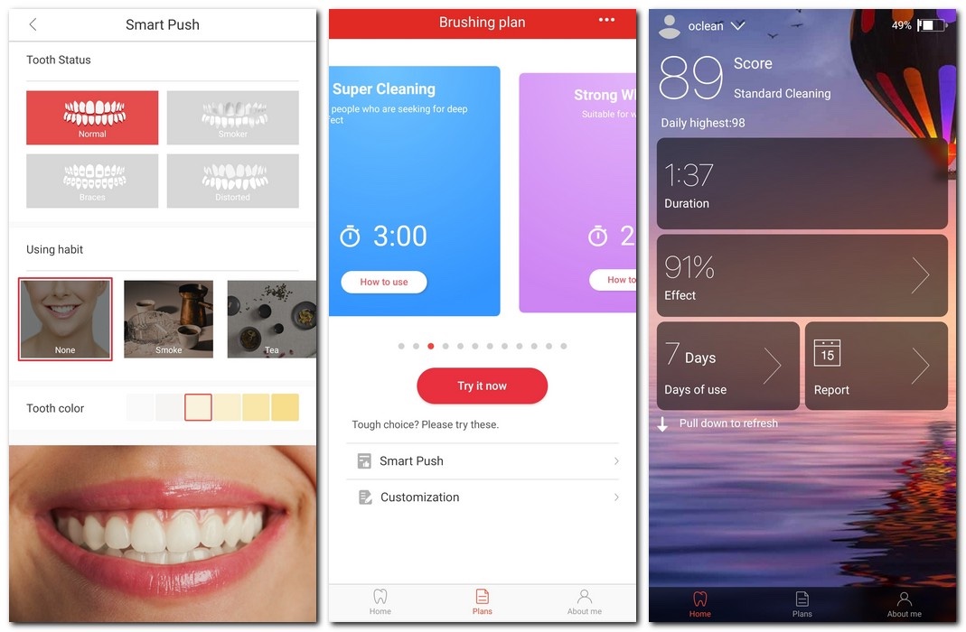 Většina elektrických zubních kartáčků přináší limitované možnosti v otázce režimů. Tři přední výrobci se s tímto snaží patřičně porvat, avšak každý svým způsobem. Oral-B například doporučuje režimy na základě stavu vašeho chrupu, přičemž Philips pak dokonce vyvinul nástavce s odlišnými režimy, které model pozná podle odlišujících se čipů. V závěru tady máme Oclean, který nabízí přes 20 režimů čištění v rámci aplikace, čímž se snaží pokrýt co možná nejširší spektrum možných potřeb uživatelů. Výhodou pak, že samotné režimy si ještě můžete přizpůsobit.