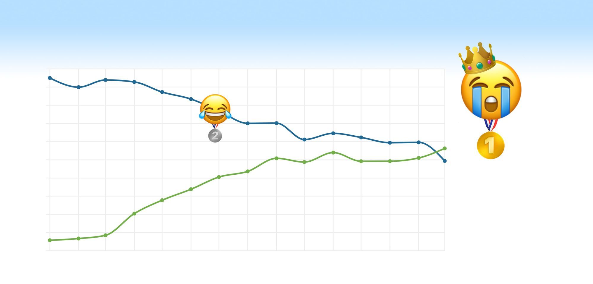 Přemýšleli jste někdy nad tím, jaký emoji je ve světě nejpoužívanější? Ještě donedávna by vás odpověď na tuto otázku asi nepřekvapila. Byl jím totiž vysmátý emoji se slzami v očích 😂. Jeho popularita však pozvolna upadala a když nastoupila pandemie koronaviru, upadla na historické minimum. Toho využil jeho dlouho sílící protivník ve formě plačícího emoji, který je v současnosti nejpoužívanějším emoji současnosti. 😭 A jak to máte vy, který emoji u vás vyhrává?