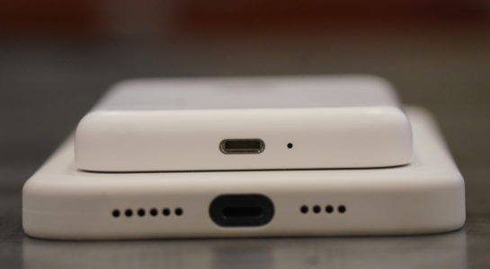 Další nálož reálných fotek se objevila před pár hodinami na Redditu, ze kterého je přesdílel uznávaný leaker DuanRui. Na snímcích, které můžete vidět vedle tohoto odstavce, je MagSafe Battery Pack připnutý konkrétně k 6,1” iPhonu 12 Pro Max s bílým silikonovým krytem. Jak můžete vidětl z hlediska šířky je novinka víceméně srovnatelná se samotným iPhonem. Co se pak týče jejích hran, ty jsou viditelně o poznání zaoblenější než je tomu u krytu. Vcelku hezky je na snímcích vidět taktéž rozdíl mezi jednotlivými materiály, ze kterých jsou doplňky vyrobeny. Zatímco kryt je totiž ze silikonu, MagSafe Battery Pack má tělo chráněné tvrdým plastem, který je o něco lesklejší než právě silikon.