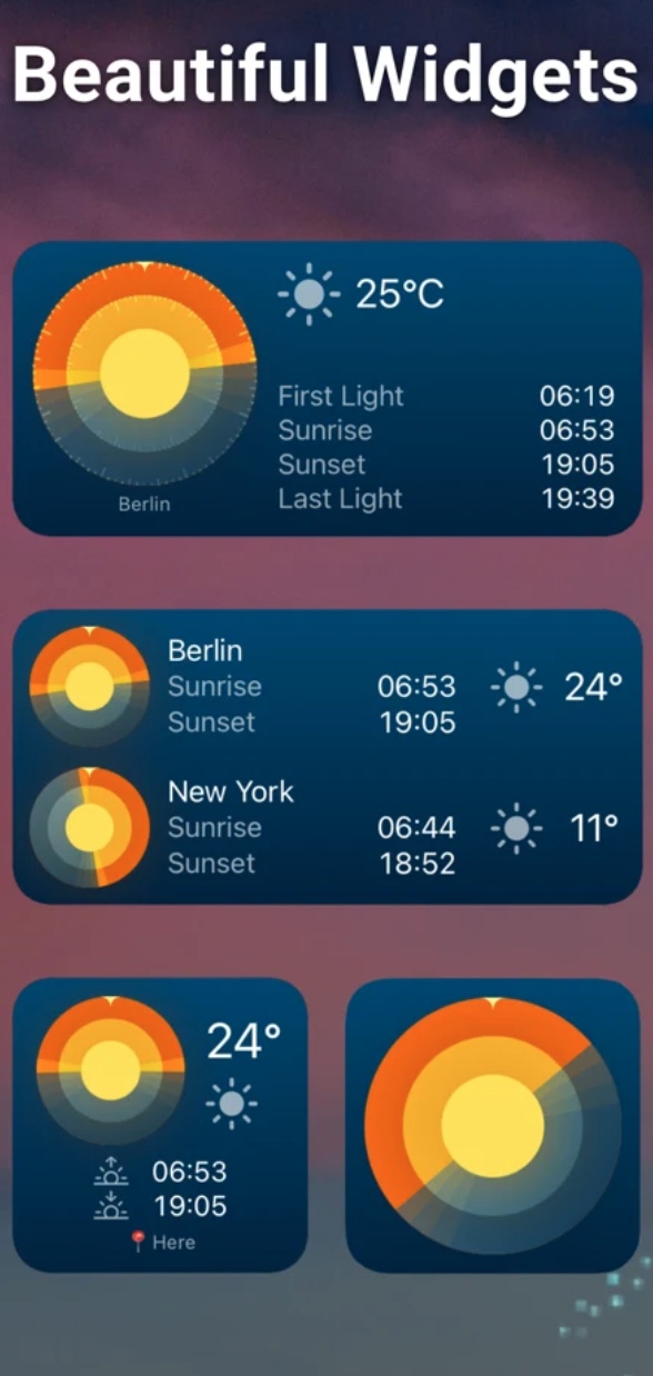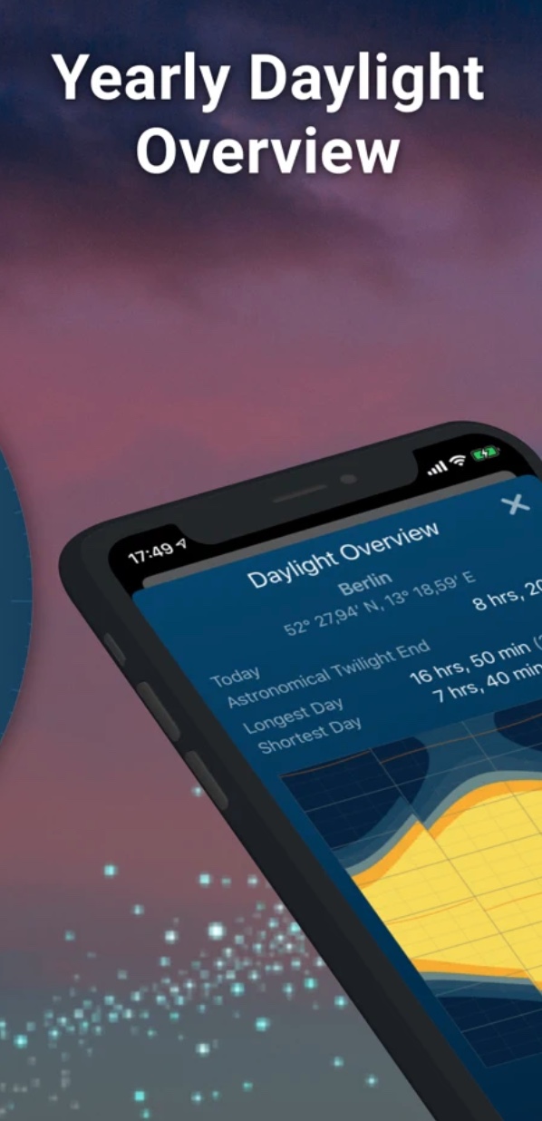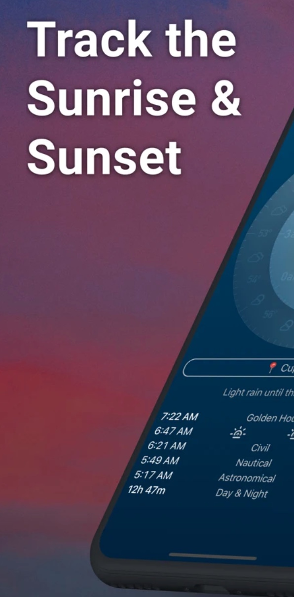 Aplikace SolarWatch vám poskytne podrobné a spolehlivé informace o čase východu a západu slunce spolu s dalšími detaily. Vše potřebné vám SolarWatch dokáže zobrazit v podobě působivých vizualizací, součástí je také předpověď počasí. Pokud chcete mít o časech východu a západu slunce neustálý přehled, aniž byste pokaždé museli spouštět samotnou aplikaci, můžete si na plochu vašeho iPhonu také nainstalovat příslušné widgety.