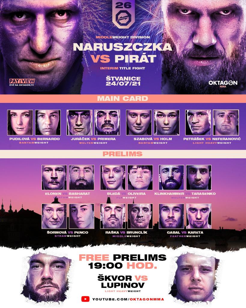 Oktagon 26 živě by dnes měl běžet na obrazovce naprosto každého fanouška MMA. Po zhruba měsíčním půstu tu totiž konečně máme další turnaj domácí organizace OKTAGON, který se navíc svou startovkou jeví více než zajímavě. O jeho hlavní zápas se postará Samuel „Pirát“ Krištofič s bijcem Naruszczkou. Těšit se ale můžeme i na návrat Milana Petráška, Lucie Pudilové či Andrése Rašky. Pokud tedy chcete i vy sledovat turnaj OKTAGON 26 živě, v následujících řádcích se dozvíte, jak na to.