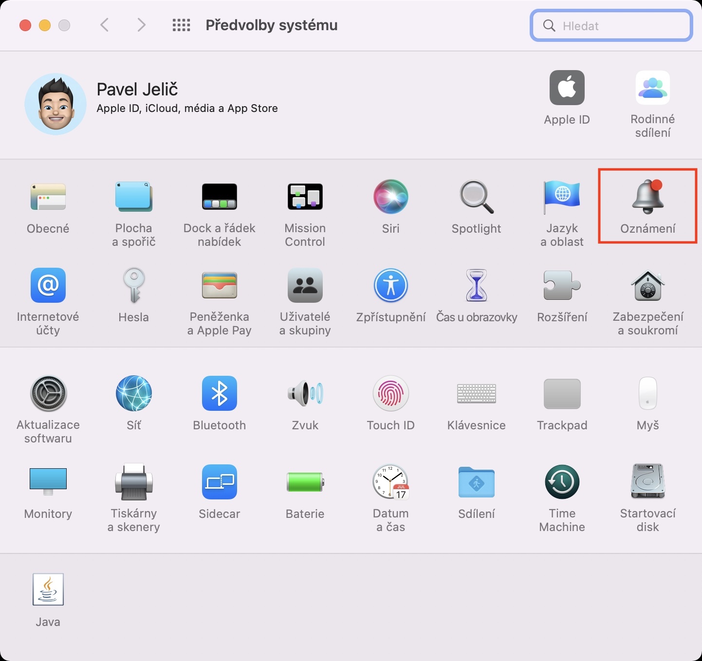 - V tomto okně najděte a rozklikněte sekci s názvem Oznámení.