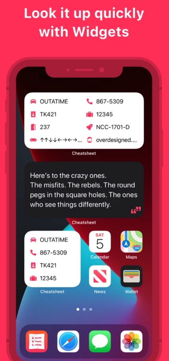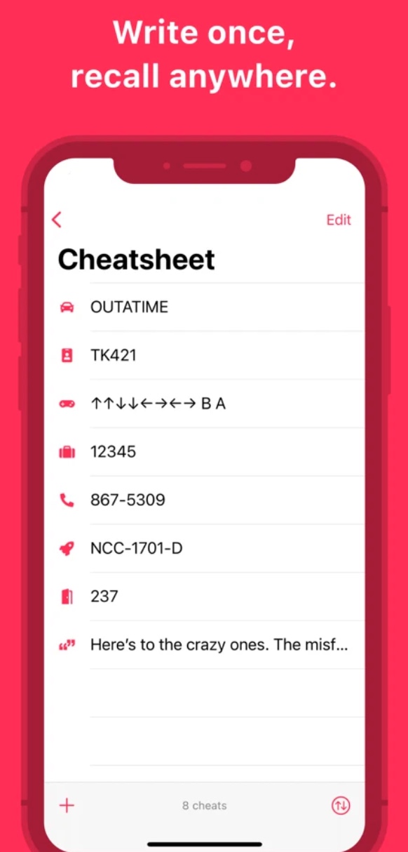 V průběhu každého dne nás všechny potkává obrovská spousta věcí, které si musíme po určitou dobu zapamatovat – kódy, telefonní čísla, adresy a řada dalších údajů. Není v lidských silách je všechny udržet v paměti, a v takových chvílích se vám bude hodit aplikace Cheatsheet Notes. Do ní si můžete snadno a rychle poznamenat vše, co potřebujete, a zobrazit si příslušné údaje na přehledných widgetech na ploše vašeho iPhonu.