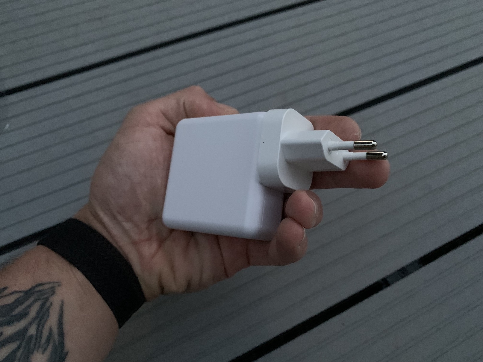 Adaptér ER POWER 65W GaN jsem osobně využíval po dobu několika týdnů a za tu dobu mohu říci, že jsem byl velice spokojený. Jedná se totiž o adaptér, kterým je jablíčkář schopen jednoduše nabít veškerá svá zařízení – a nejen ta. Recenzovaný adaptér jsem využíval především pro rychlonabíjení iPhonu a pro klasické nabíjení MacBooku a Apple Watch. Vyzkoušel jsem nabíjet hned několik různých zařízení najednou, přičemž jsem ale samozřejmě sledovat to, jakým způsobem se výkon rozdělí (viz výše či balení nebo tělo adaptéru). Dva iPhony lze tedy pomocí USB-C rychlonabíjet najednou (výkon 2x 30 W), pokud však přidáte třeba Apple Watch, tak už se maximální výkon USB-C s označením 2 zmenší na 15 W, klasickému USB-A (v mém případě pro nabíjení Apple Watch) tak zbyde výkon 10 W. Pokud chcete nabíjet 13″ MacBook Pro, tak jej musíte nabíjet samostatně skrze USB-C 1 (65 W), například MacBook Air je ale možné nabíjet (30W) zároveň například s iPhonem skrze druhé USB-C (rychlonabíjení, 30W), popřípadě s jiným zařízením, které zapojíte do klasického USB-A (až 30 W).