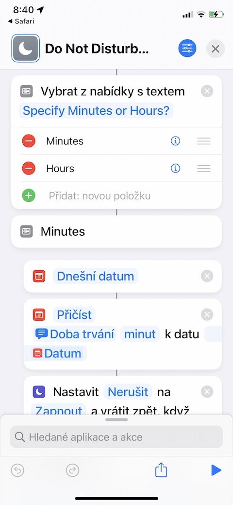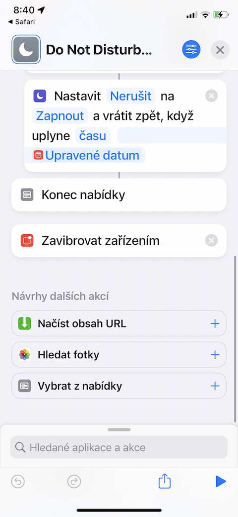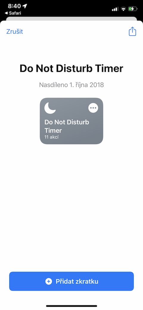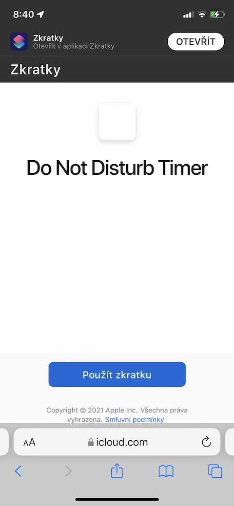 Pokud vám z jakéhokoliv důvodu nevyhovují možnosti přizpůsobení režimu Nerušit na vašem iPhonu, můžete si pro tyto účely nainstalovat a vyzkoušet zkratku s názvem Do Not Disturb Timer. S pomocí této zkratky můžete na vašem iPhonu jednoduše a okamžitě aktivovat režim Nerušit, přičemž je možné nastavit přesnou délku doby jeho trvání.