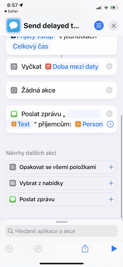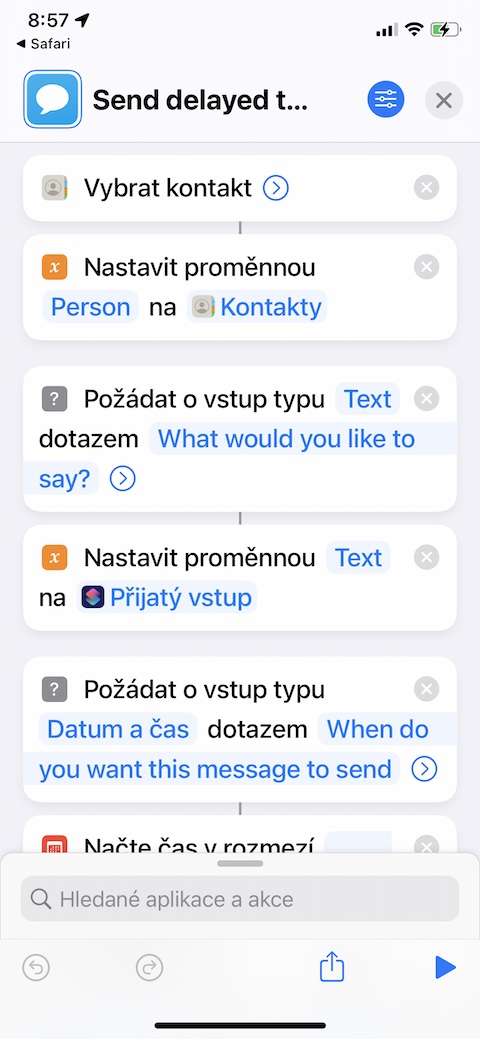 Jak název napovídá, zkratku Send Delayed Text můžete využít k přesnému načasování odeslání textové zprávy z vašeho iPhonu. Zkratka Send Delayed Text se vás nejprve po svém spuštění zeptá, komu chcete odeslat časovanou textovou zprávu. Po zadání kontaktu a povolení přístupu vám postačí už jen zadat datum a hodinu, kdy se má vytvořená textová zpráva odeslat.