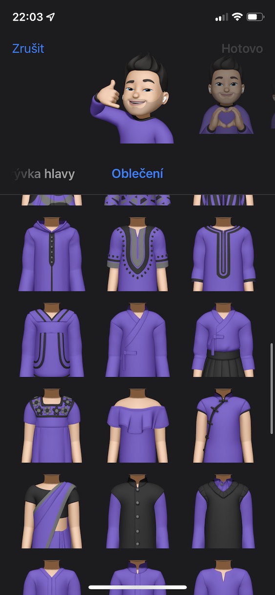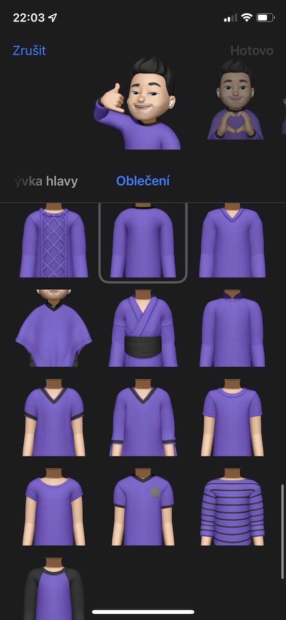 Memoji jsou tady s námi již několik dlouhých let. Konkrétně je mohou využít všichni uživatelé, kteří vlastní iPhone s Face ID – a nebavíme se o nálepkách. Memoji jako takové dokáží v reálném čase převést váš obličej na virtuální postavičku, díky které je možné některé pocity vyjádřit o mnoho lépe. Postaviček Memoji si můžete vytvořit kolik chcete a změnit jim můžete například oči, obočí, uši, pusu, tvář, tvar hlavy, vlasy a mnoho dalšího. V iOS 15 jsme se pak dočkali vylepšení Memoji – konkrétně se můžete těšit na možnost pro změnu oblečení. K dispozici bude více než čtyřicet různých stylů a mnoho barev, tudíž si můžete být jistí tím, že váš Memoji bude opravdu jedinečný. Změny se pak udály i v pokrývkách hlavy či brýlích.