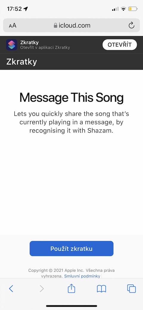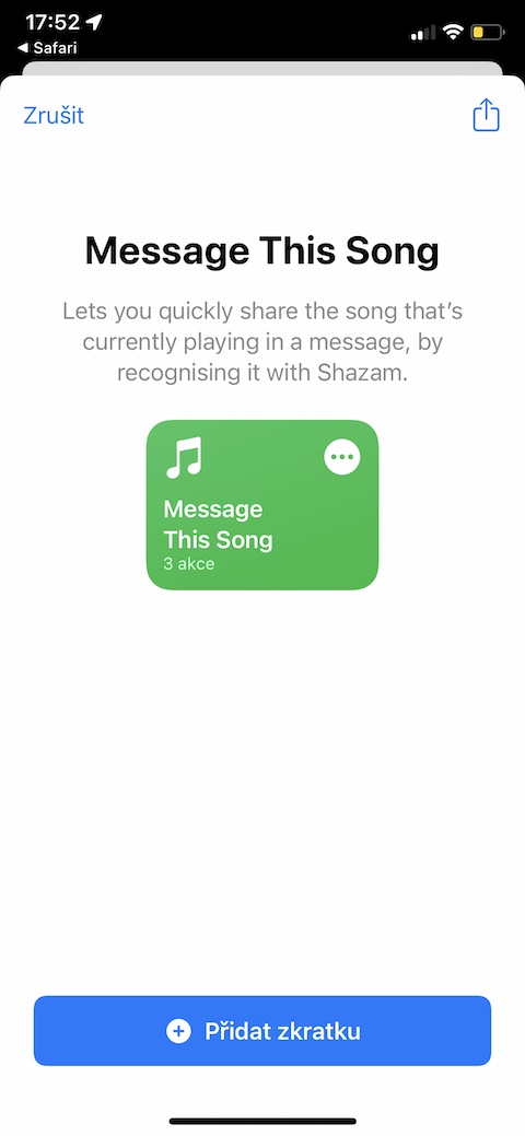 Nedílnou součástí iOS zařízení je také aplikace Shazam. Jejím prostřednictvím můžete nejen snadno a rychle identifikovat právě přehrávanou skladbu, ale také ji třeba nasdílet různými obvyklými způsoby. V případě, že se vám nechce pro tyto účely pokaždé spouštět Shazam a poté se pouštět manuálně do sdílení, můžete využít zkratku s názvem Message This Song, která tyto úkony zvládne podstatně rychleji a zcela sama.