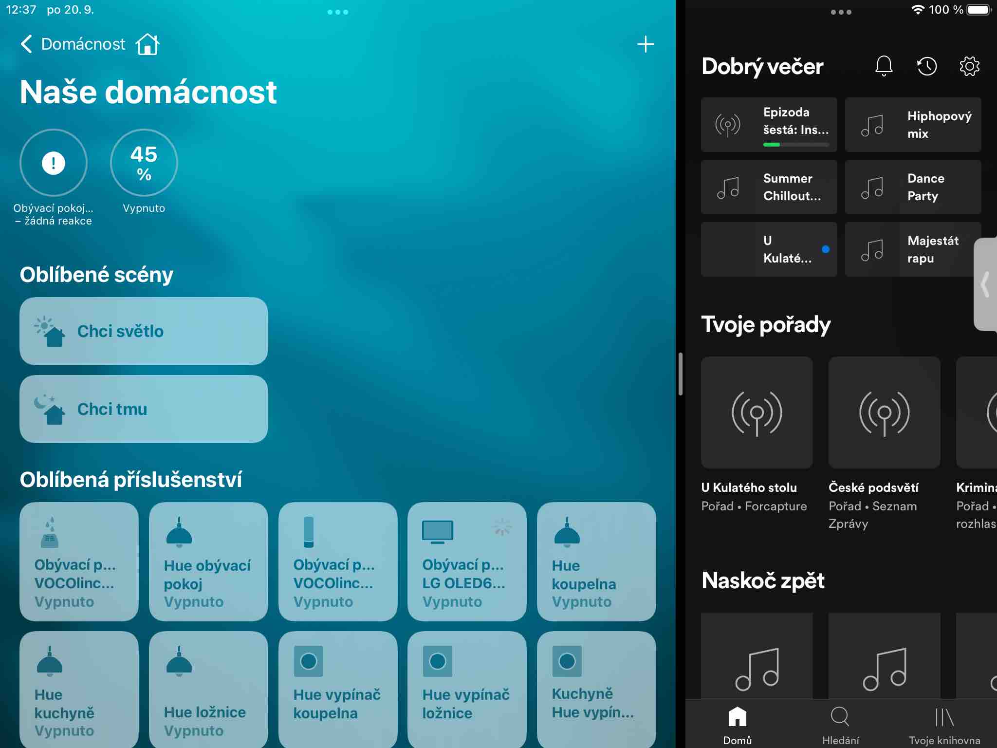 Nový iPadOS 15 jsem testoval konkrétně na iPadu 6. generace z roku 2018 – tedy na víceméně průměrném zařízení, u kterého iPadOS nenarazí na nedostatek výkonu, ale ani na jeho přehršel. Přiznám se, že zprvu mě nový systém příliš neoslovil, protože v prvních betách tablet jednak relativně zpomalil a jednak se systém poměrně výrazně sekal. Ani výdrž na tom nebyla v porovnání s veřejnými verzemi iPadOS 14 příliš vesele, což dělalo z testovacího iPadu kousek využitelný tak trochu za trest. Postupem času se sice stabilita a rychlost systému dostala na velmi uspokojivou úroveň, ale abych byl upřímný, ani po instalaci finální bety iPadOS 15 nemám tak úplně pocit, že mám v ruce tablet se systémem pro veřejnost. Na veřejný iPadOS 14 totiž co do svižnosti stále tak úplně nemá a co mě překvapuje ještě více, nevyhýbají se mu ani pády aplikací a to dokonce ani těch nativních. Jakmile je otevřete ve full screenu, většinou se udrží a jde s nimi pracovat. Pokud však chcete využívat multitasking, který mám osobně na iPadech velmi rád a přijde mi, že je jejich suverénně nejsilnější zbraní, s pády aplikací se můžete setkávat docela často. V mém případě padá poměrně ráda aplikace Domácnost, vedle které mi běželo Apple Music a řada dalších nativních aplikací. Stejná situace je i u Spotify, které v multitaskingu vedle domácnosti rádo padá.