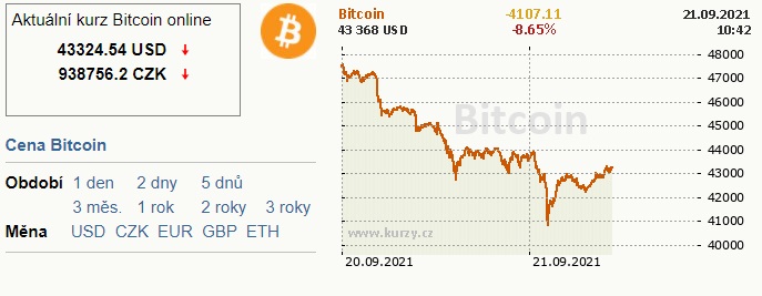 Opět se opakuje, že hodnota nejznámější krytpoměny na světě je jako na horské dráze. Zatímco ještě včera sahal bitcoin na 48 tisíc dolarů, dnes už se blíží k 43 tisícům. V moment psaní tohoto odstavce má „jedna mince“ hodnotu 43 324 dolarů, což odpovídá přibližně 938 tisícům korun. Sledujete dění okolo kryptoměn?