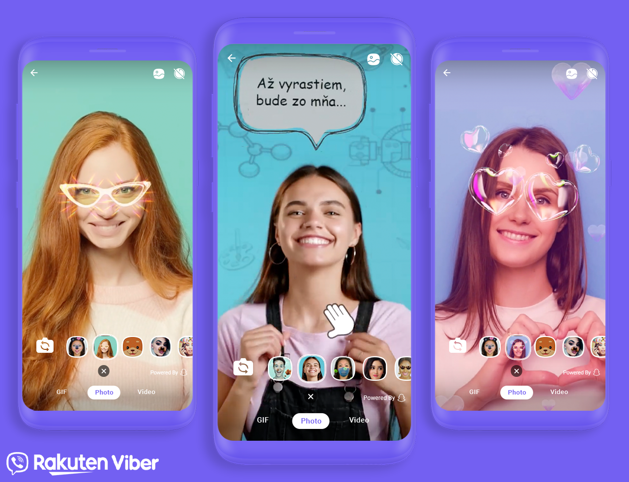 AR objektivy dělají komunikaci podstatně zábavnější, zapamatovatelnější a zajímavější. To si samozřejmě uvědomuje i Rakuten Viber, a proto svým uživatelům přináší doslova široké porfólio kreativity pro vytváření zajímavých fotografií a videí a následné sdílení s přáteli, případně na jiných platformách. Objektivy rozšířené reality takto reagují i na nejmenší mimické pohyby, což zabezpečuj zachytávání pohybů tváře, úsměvy či mrkání a dodává jim skvělý nádech.