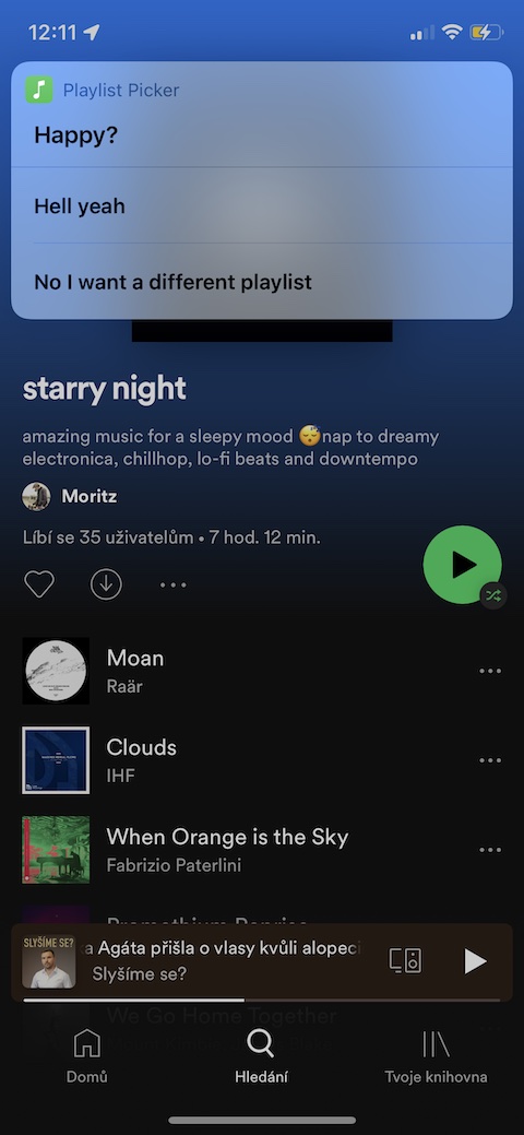 Nemůžete se rozhodnout, který playlist si pustíte v rámci hudební streamovací služby Spotify? Tato zkratka provede veškeré rozhodování za vás. Pokud se vám nebude líbit playlist, který vám v danoou chvíli nabídla, není nic jednoduššího, než náhodné losování zkrátka a jednoduše provést znovu.