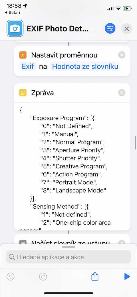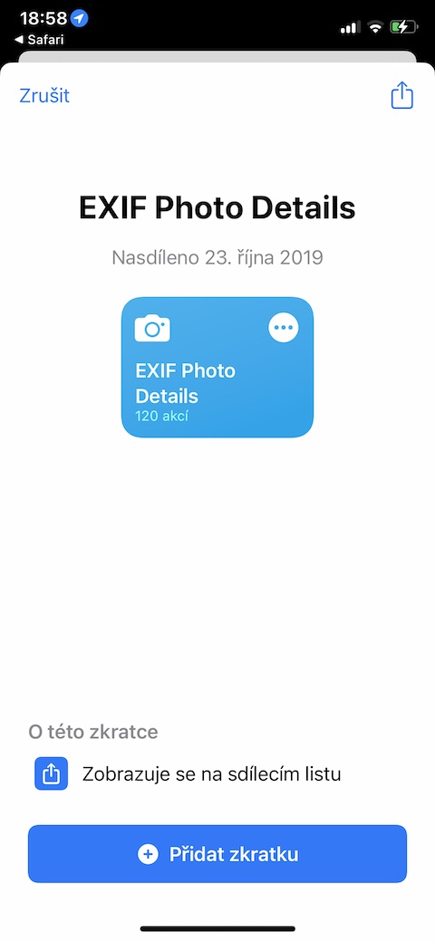 Pokud u libovolné fotografie na vašem iPhonu aktivujete s pomocí Siri nebo třeba z listu sdílení zkratku s názvem EXIF Photo Details, můžete snadno a rychle zjistit veškeré důležité údaje o příslušném snímku. Zkratka EXIF Photo Details vám prozradí, kdy a kde byla fotografie pořízena, s pomocí jaké techniky, a další detaily, které budou k danému snímku k dispozici.