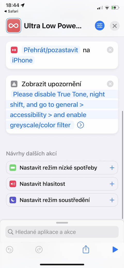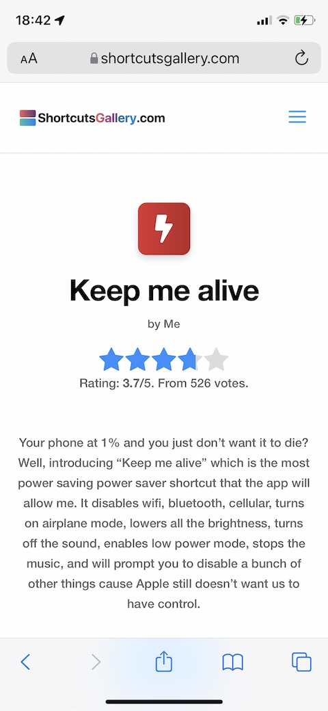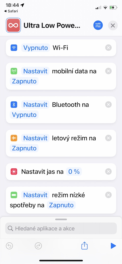Potřebujete akutně ušetřit poslední procento baterie vašeho iPhonu? Po aktivaci zkratky Keep me Alive dojde k automatickému sledu spuštění řady akcí, jako je deaktivace Bluetooth, Wi-Fi i mobilního připojení, aktivace režimu Letadlo, snížení jasu na minimum a řady dalších. Díky tomu dokáže váš iPhone zůstat v pohotovosti o něco déle.