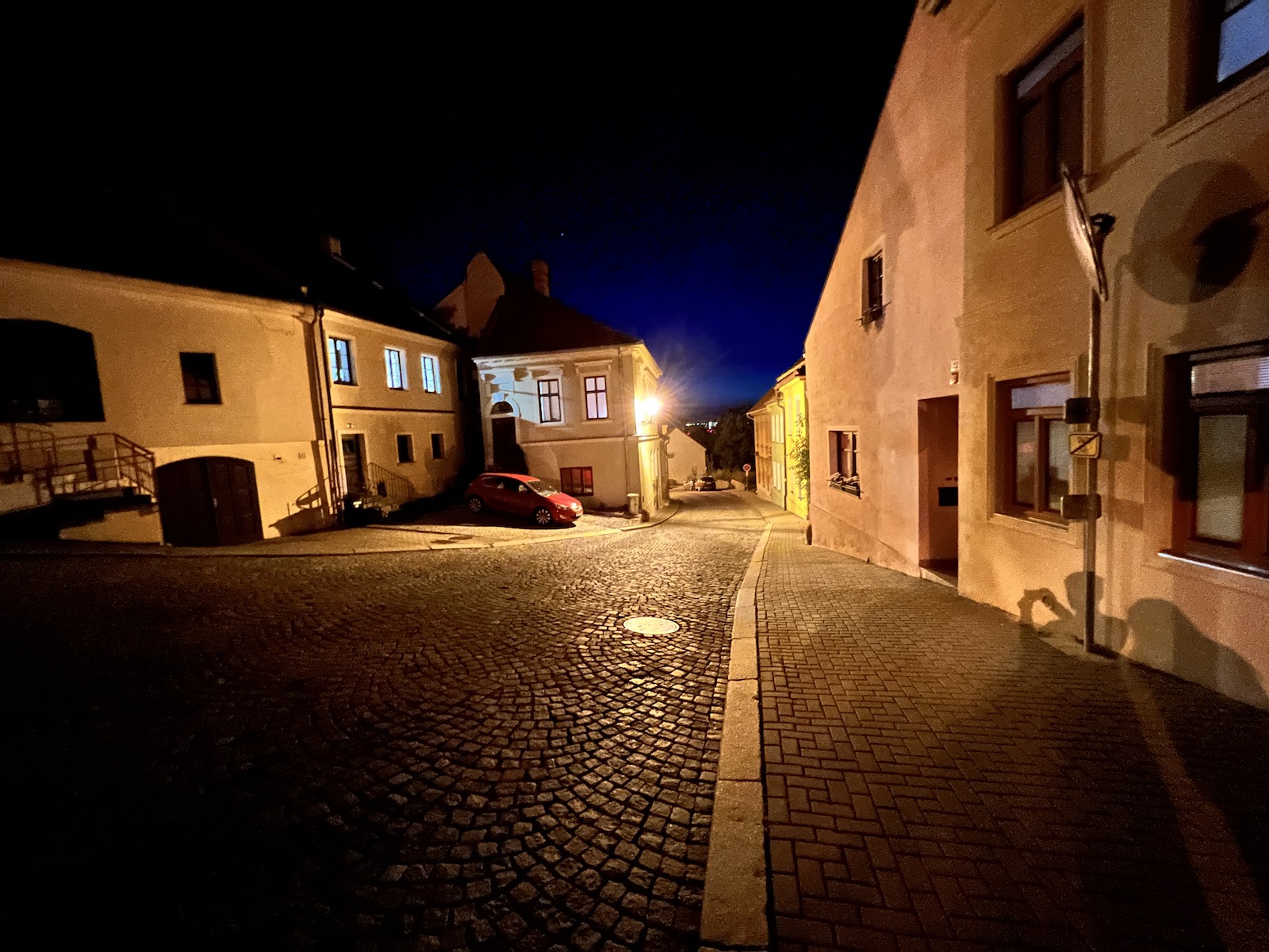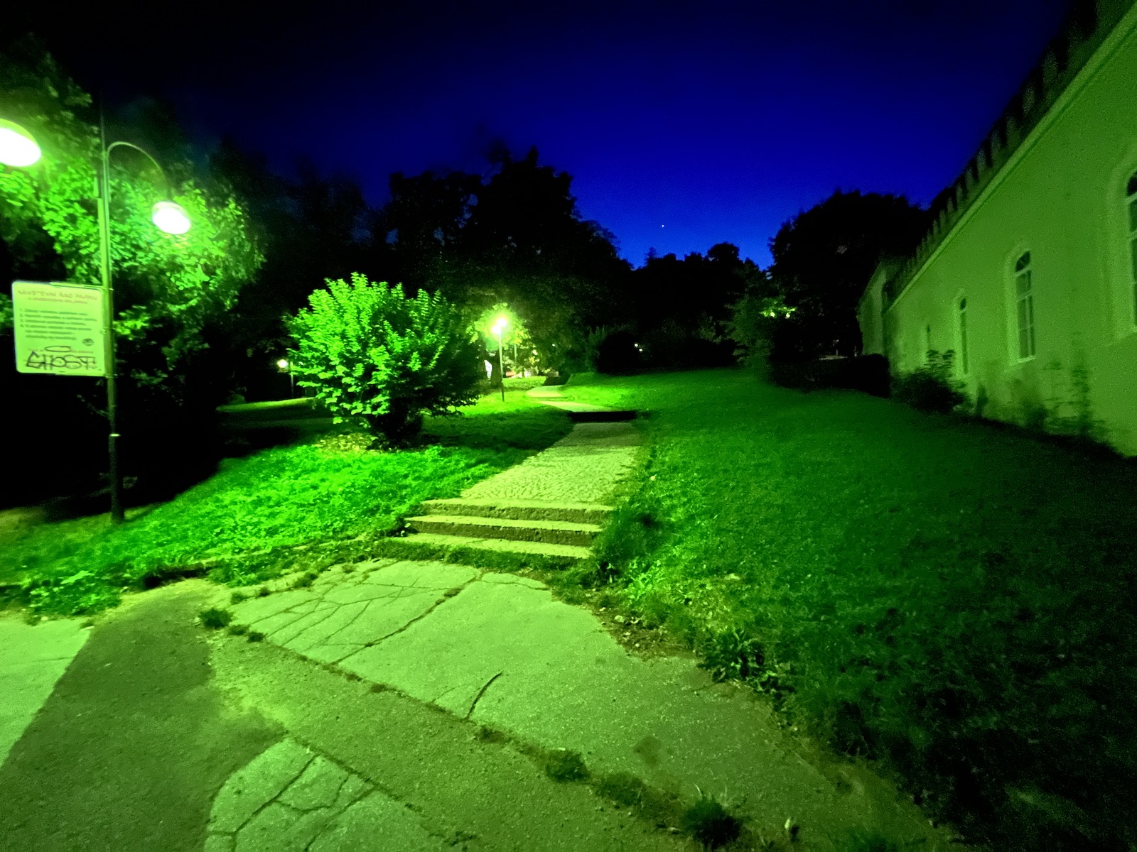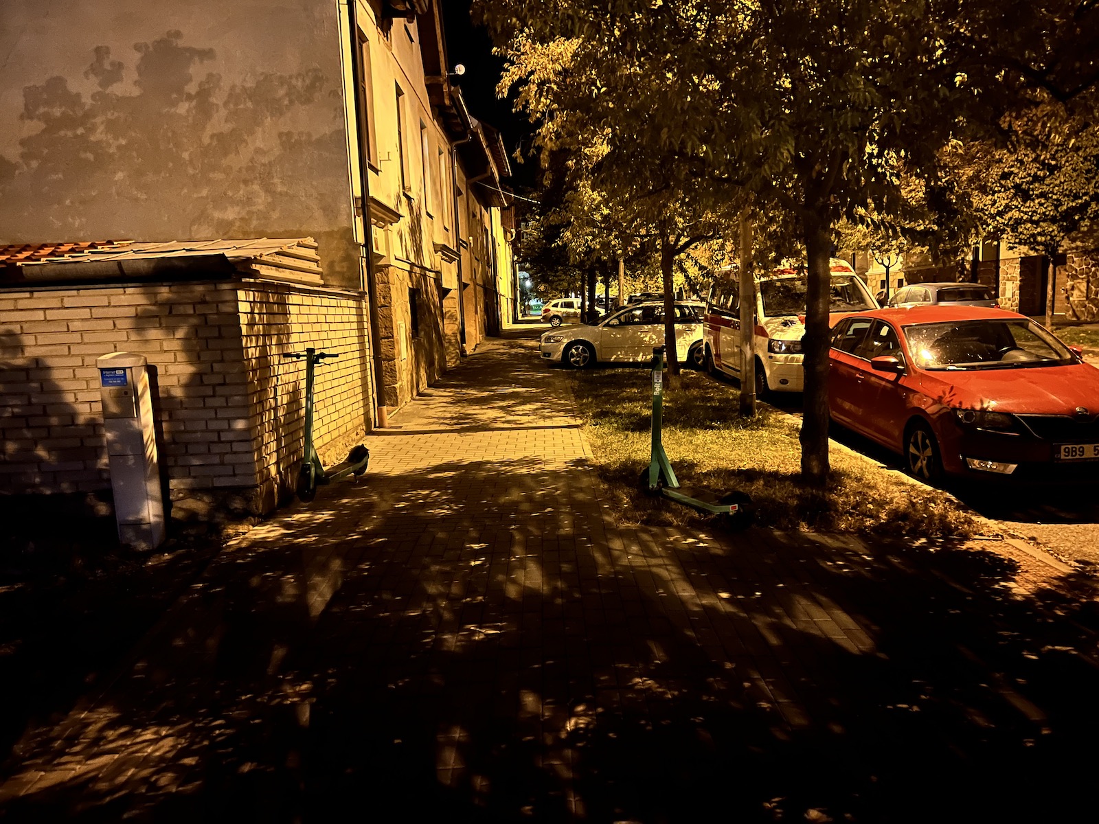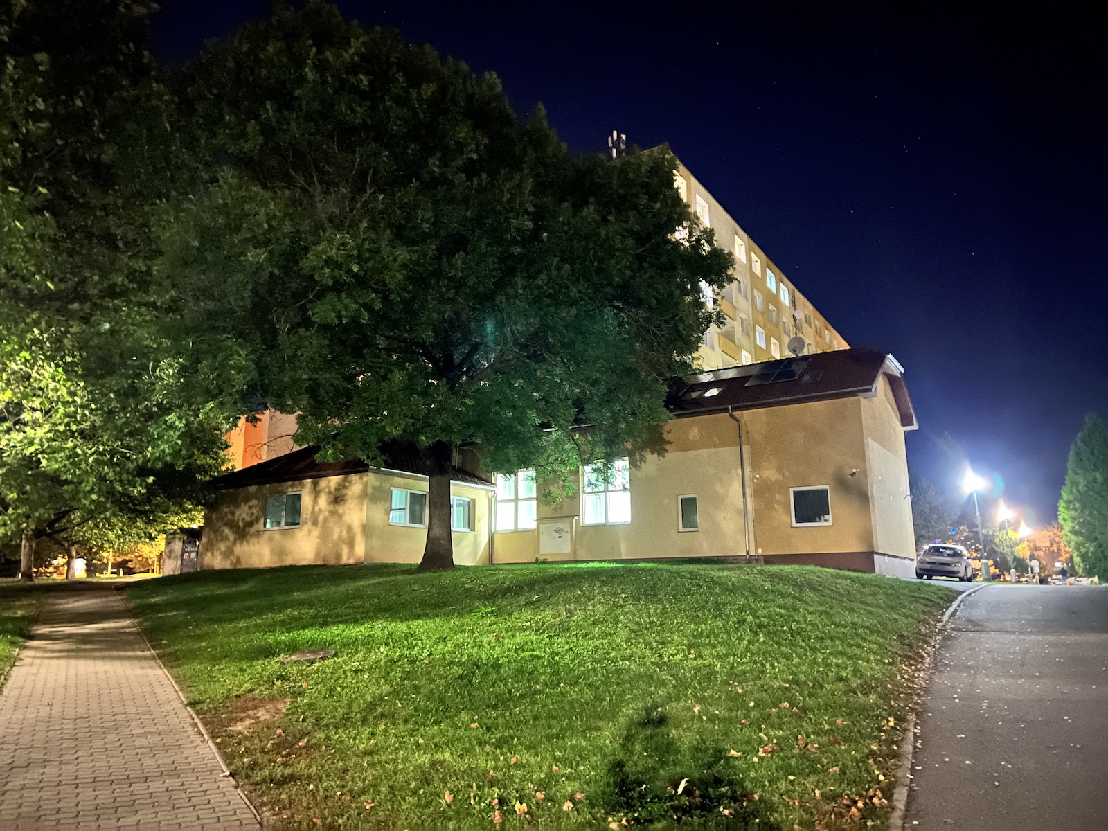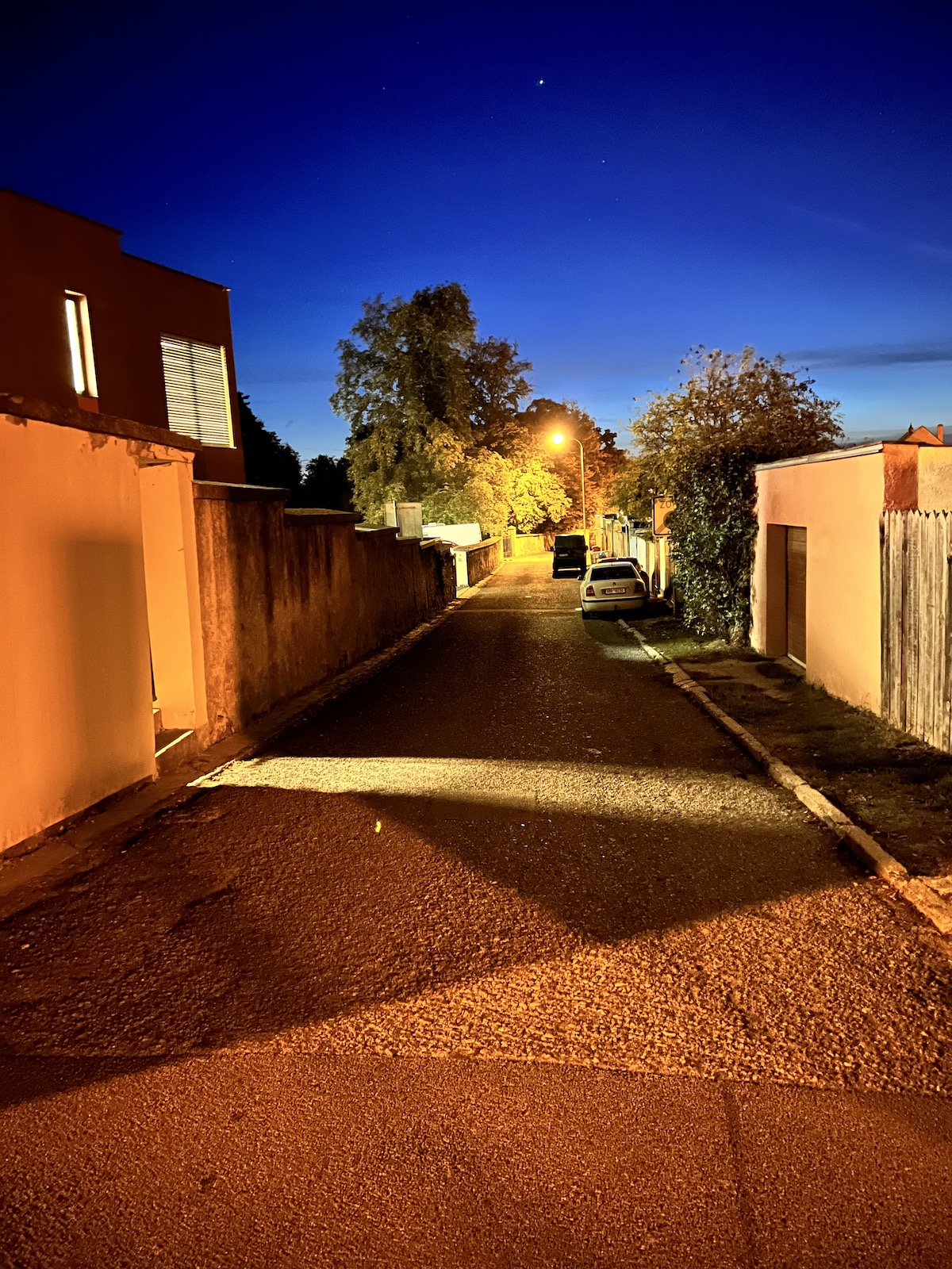 Navíc mi přijde, že některé noční fotky jsou softwarem až moc přesvětleny, kvůli čemuž nevypadají příliš dobře. Například když člověk fotí noční oblohu, často se mi stávalo, že se mi z nějakého nepochopitelného důvodu velmi zesvětlil střed fotky a kraje zůstaly tmavší, přestože v reálu byla celá obloha v jedné barvě a bez jakéhokoliv světelného znečištění. Jinými slovy, fotka vypadala zkrátka jinak, než jsem jí v noci okem viděl. Na druhou stranu je ale třeba Apple pochválit za to, že je noční režim skutečně použitelný u všech objektivů. U širokoúhlého a ultraširokoúhlého z něj lezou opravdu povedené snímky (byť si ultraširokoúhlý neporadí tak dobře se zdroji světla a nezachytí tolik detailů) a ani teleobjektiv na tom není v noci úplně špatně.