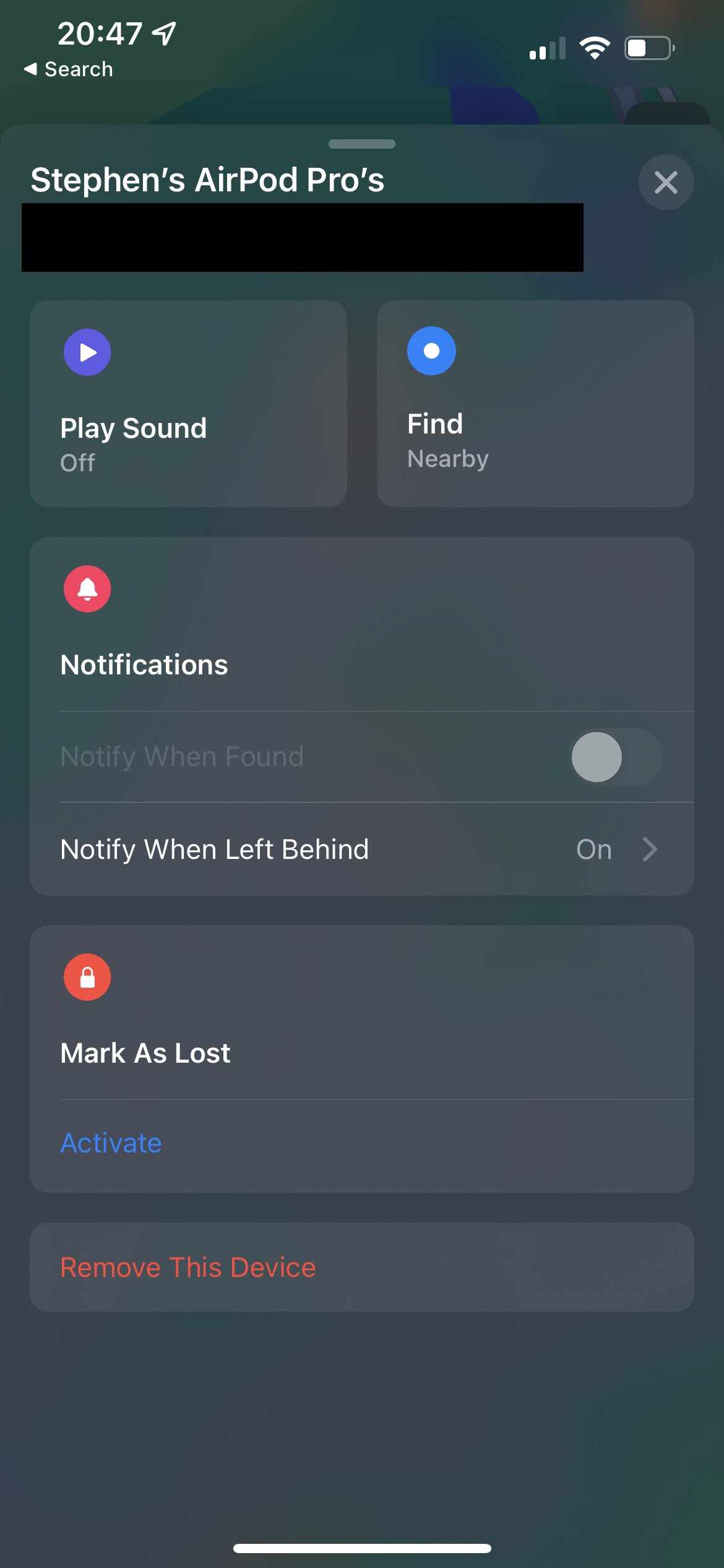 Najít-zařízení-air pods pro-oznámení-upozornit na zapomenutí (ZAPNUTO)