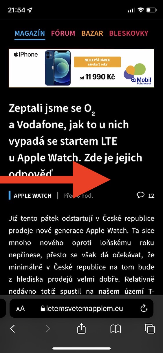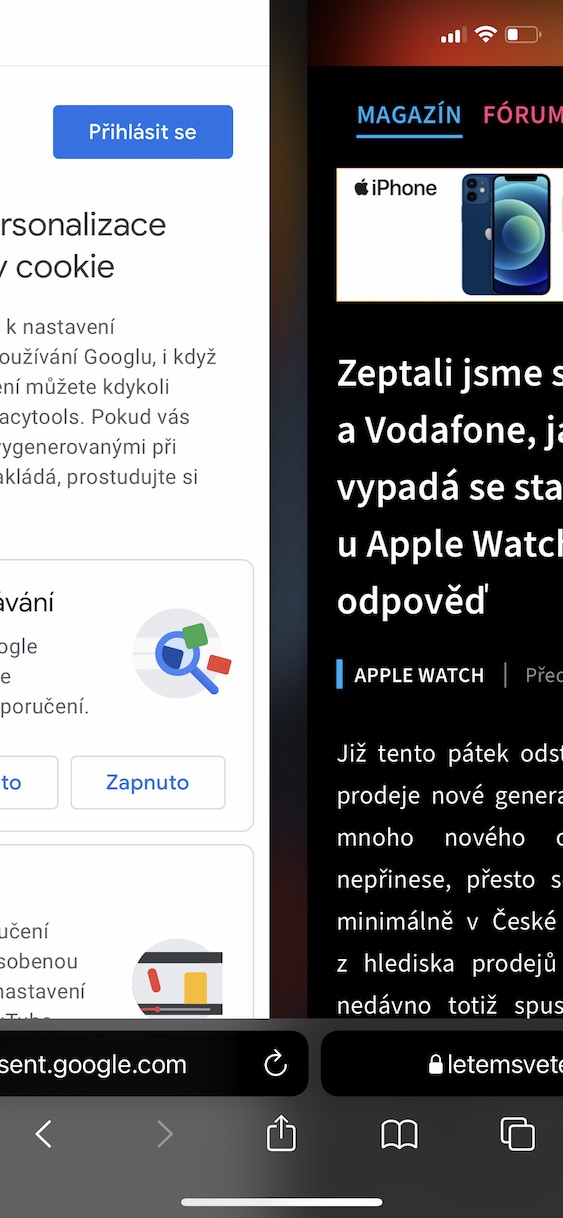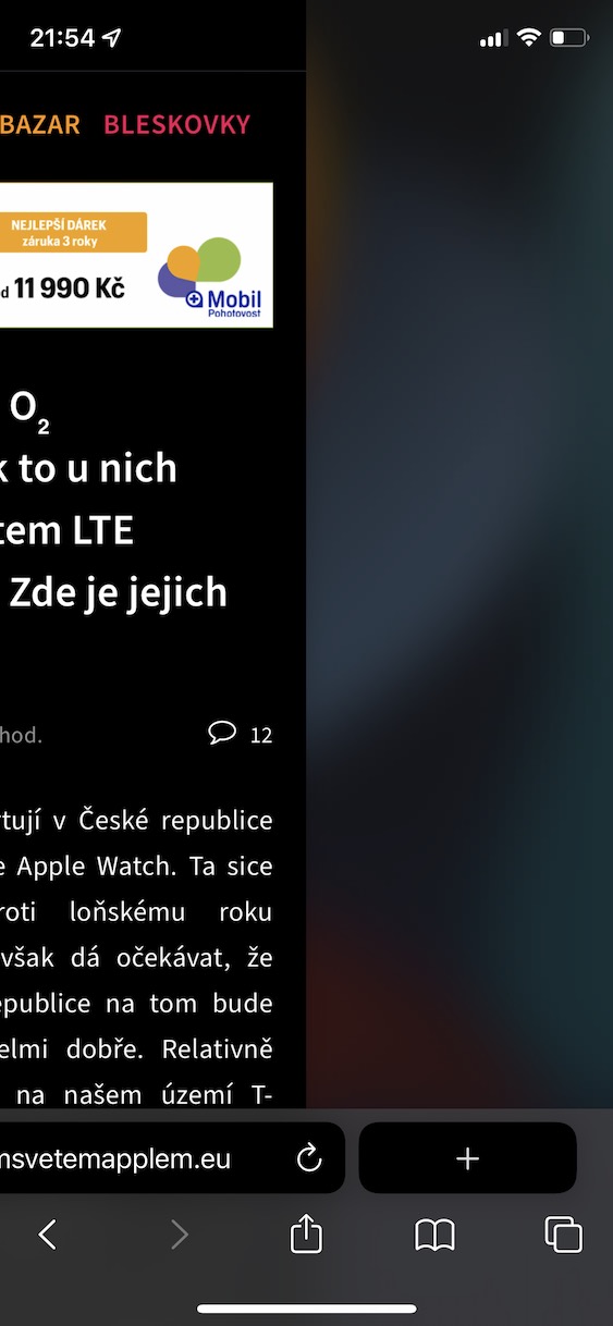 Při používání Safari můžeme využít také panely, stejně jako například na Macu či kdekoliv jinde. Díky panelům se pak můžeme rychle a jednoduše přesouvat mezi otevřenými stránkami. Dobrou zprávou je, že v Safari z iOS 15 se nově můžete jednoduše přesouvat mezi panely prostřednictvím jednoduché gesta, které je podobné jako u přesunutí zpět či vpřed. Pokud se tedy chcete přesunout na předchozí panel, tak stačí, abyste přejeli prstem ze spodní části levé hrany displeje směrem doprava. Pro přesunutí na následující panel pak přejeďte prstem ze spodní části pravé hrany displeje směrem doprava. Konkrétně je nutné, abyste prstem přejížděli v rámci adresního řádku s tlačítky. V případě, že budete prstem přejíždět v obsahové části, tak se budete přesouvat právě o stránku zpět či vpřed.