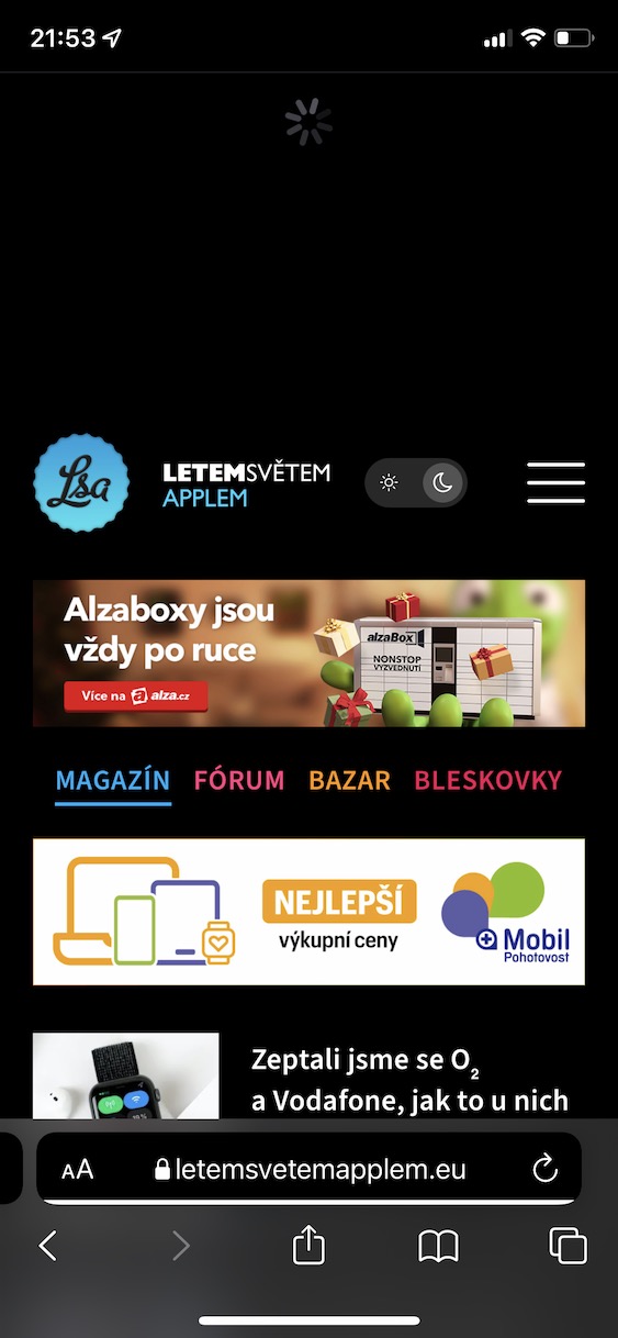 V případě, že jste v minulosti chtěli aktualizovat webovou stránku, tak jste k tomu museli využít tlačítko pro aktualizaci. Tohle tlačítko je i nadále k dispozici také v iOS 15, každopádně aktualizaci lze nově jednoduše provést i pomocí gesta. Tohle gesto je stejné jako v prakticky všech ostatních aplikacích, ve kterých se rozhodnete pro aktualizaci obsahu. Pokud se nacházíte v horní části stránky, tak stačí, abyste prstem potáhli shora dolů. V horní části obrazovky se začne objevovat aktualizační indikátor, který po provedení aktualizace zmizí.