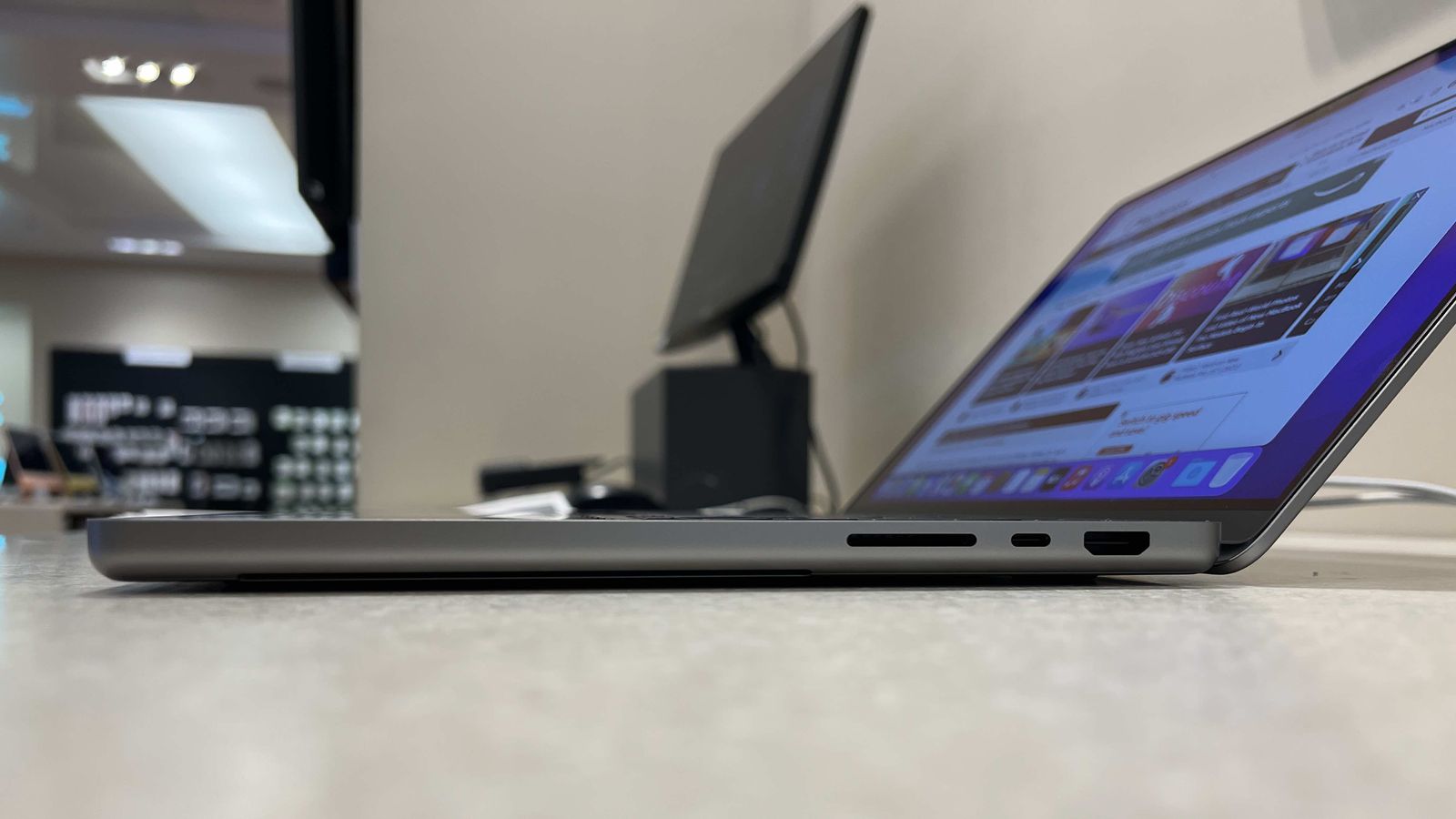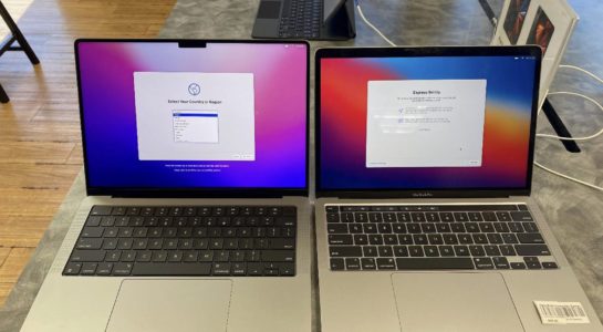 Z reálných fotek se zdá, že je nový MacBook Pro oproti předešlé generaci opravdu o poznání tlustější. Při porovnání 13″ a 14″ modelů se pak zase dá říci, že ačkoliv je rozdíl mezi nimi pouhý jeden palec, díky většímu displeji s miniaturními rámečky působí 14″ stroj daleko větším dojmem. Černé podbarvení klávesnice mu pak dává jakýsi punc profesionálního stroje, což je sice malý, leč opravdu hezký detail. Co se pak týče výřezu v displeji, ten působí na fotkách relativně nenápadně a asi tak nebude problém si na jeho existenci zvyknout.