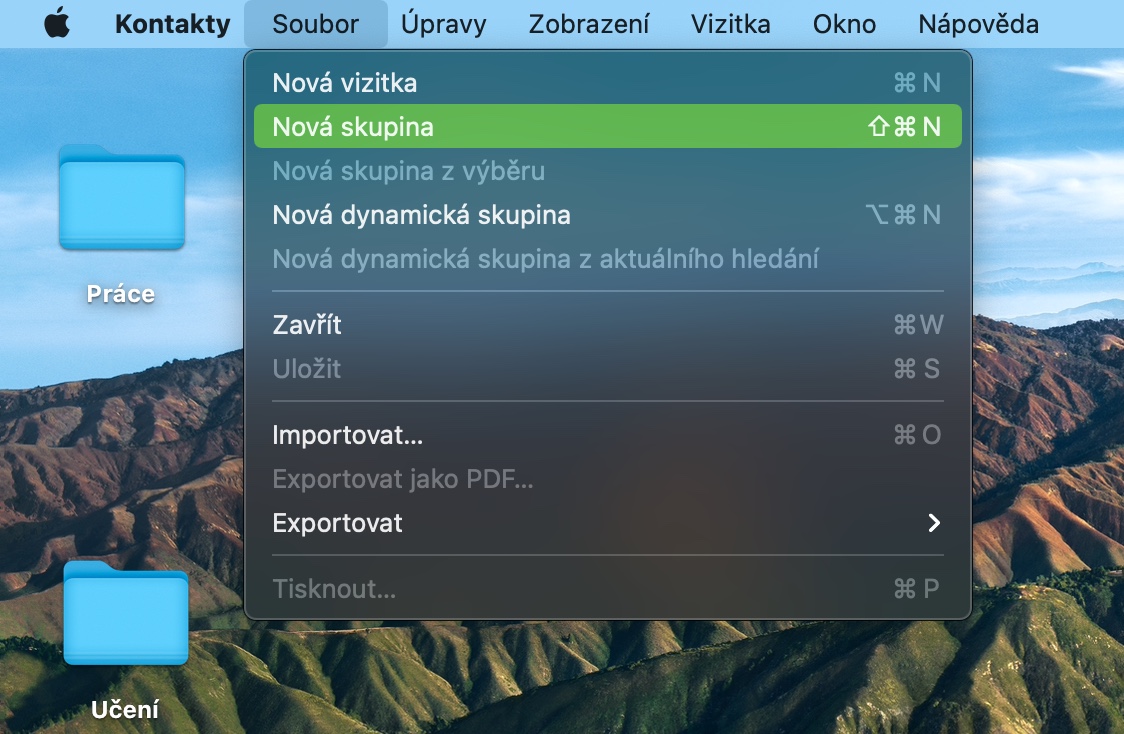 Pro pracovní komunikaci se vám také budou velmi hodit skupiny kontaktů, kterým můžete rozesílat specifické zprávy. Vytvořit skupinu kontaktů je velice jednoduché, tentokrát budete ale spouštět nativní aplikaci Kontakty. Na nástrojové liště v horní části obrazovky vašeho Macu klikněte na Soubor -> Nová skupina. Poté stačí už jen pojmenovat nově vytvořenou skupinu kontaktů a přidat jednotlivé členy.