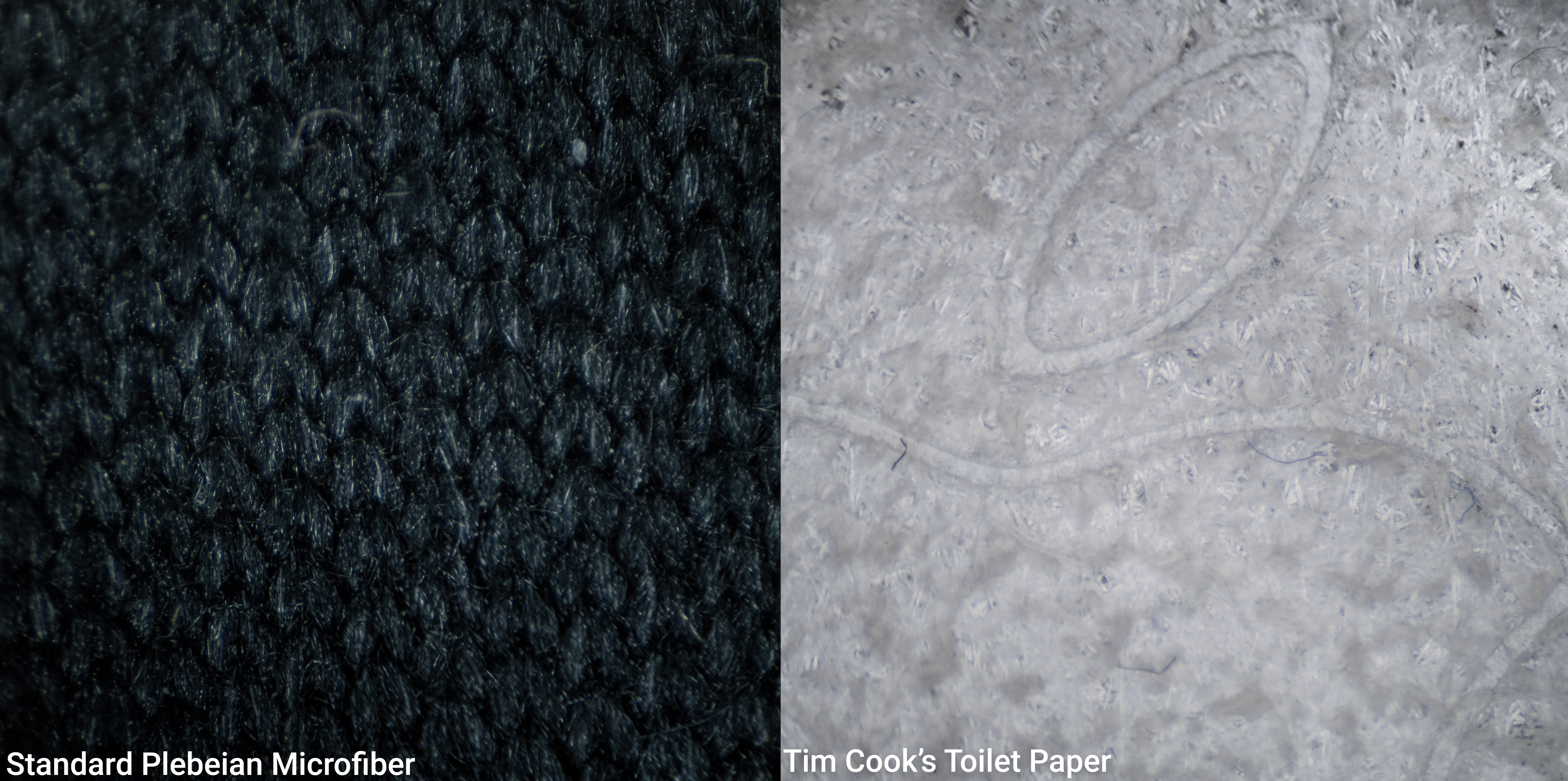 Přestože se iFixit specializuje primárně na rozebírání elektroniky, “posvítit si” na nový hadřík od Applu jim taktéž nebylo cizí. Zjistili například to, že materiál, ze kterého je vyroben, je identický s tím, který Apple používá na vnitřní straně Smart Coveru pro iPady. Na mysli máme konkrétně stranu dotýkající se displeje, která je tvořena mikrovláknem – a možná trochu překvapivě stejným jaké tvoří hadřík. Poměrně zajímavou informací je pak to, že hadřík je ve skutečnosti složen ze dvou vrstev, které jsou k sobě slepené, byť obě vrstvy jsou z hlediska jejich leštících schopností zcela stejné. Poměrně zajímavý je pak pohled na hadřík pod mikroskopem. Ten totiž potvrzuje extrémní jemnost jednotlivých vláken, která jsou nesrovnatelně menší oproti klasickým hadříkům, díky čemuž je novinka Applu vhodná i pro leštění displejů s nanotexturou.
