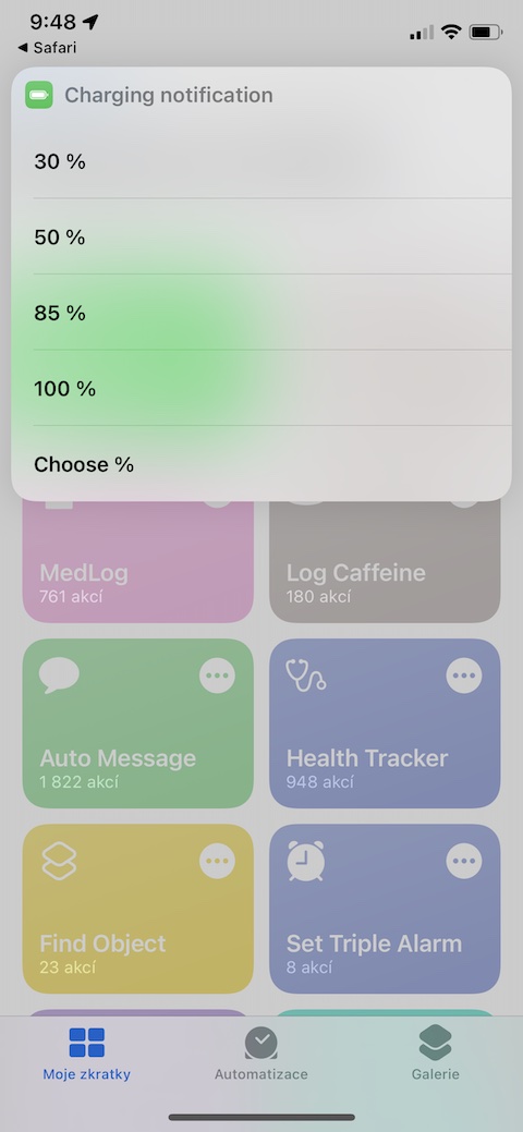 S pomocí zkratky jménem Charging Notification si můžete na vašem iPhonu nastavit procento úrovně nabití baterie, při kterém chcete obdržet notifikaci. Požadovanou úroveň nabití vyberete v jednoduchém menu, a jakmile této úrovně bude při nabíjení dosaženo, váš iPhone vás na tuto skutečnost upozorní.