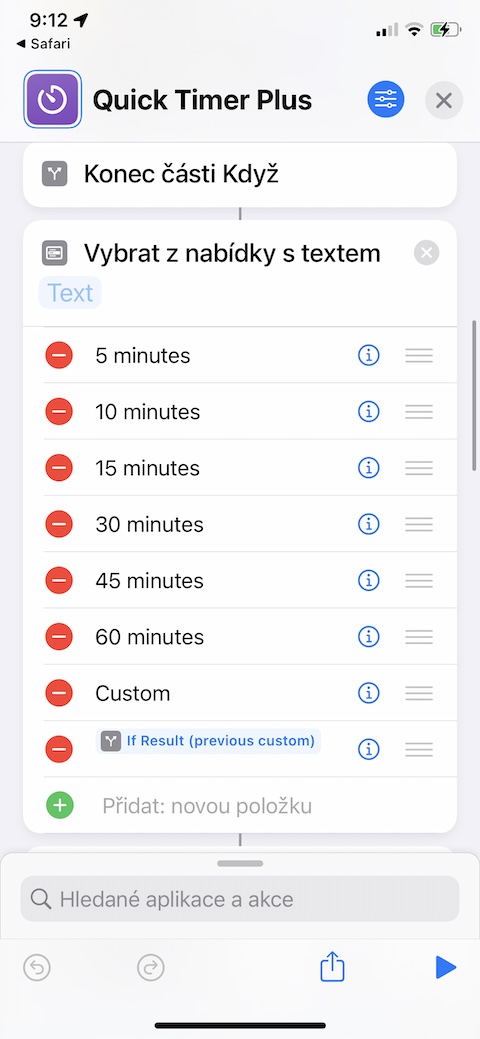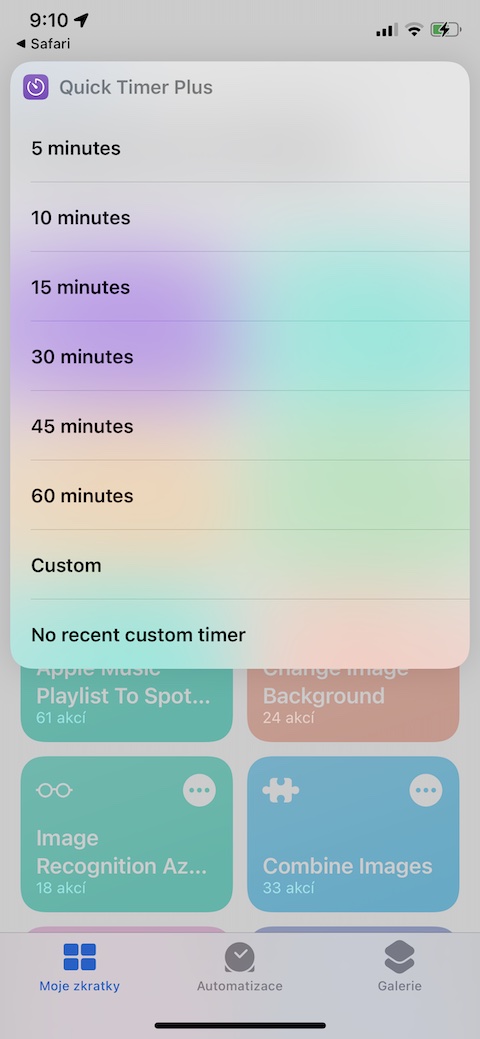 Nevyhovuje vám nastavení odpočtu prostřednictvím nativní aplikace Hodiny na vašem iPhonu? Můžete k tomuto účelu využít zkratku s názvem Quick Timer Plus. Po jejím spuštění se vám zobrazí menu, ve kterém můžete vybrat časovač. Jednotlivé intervaly můžete upravit v nastavení zkratky.