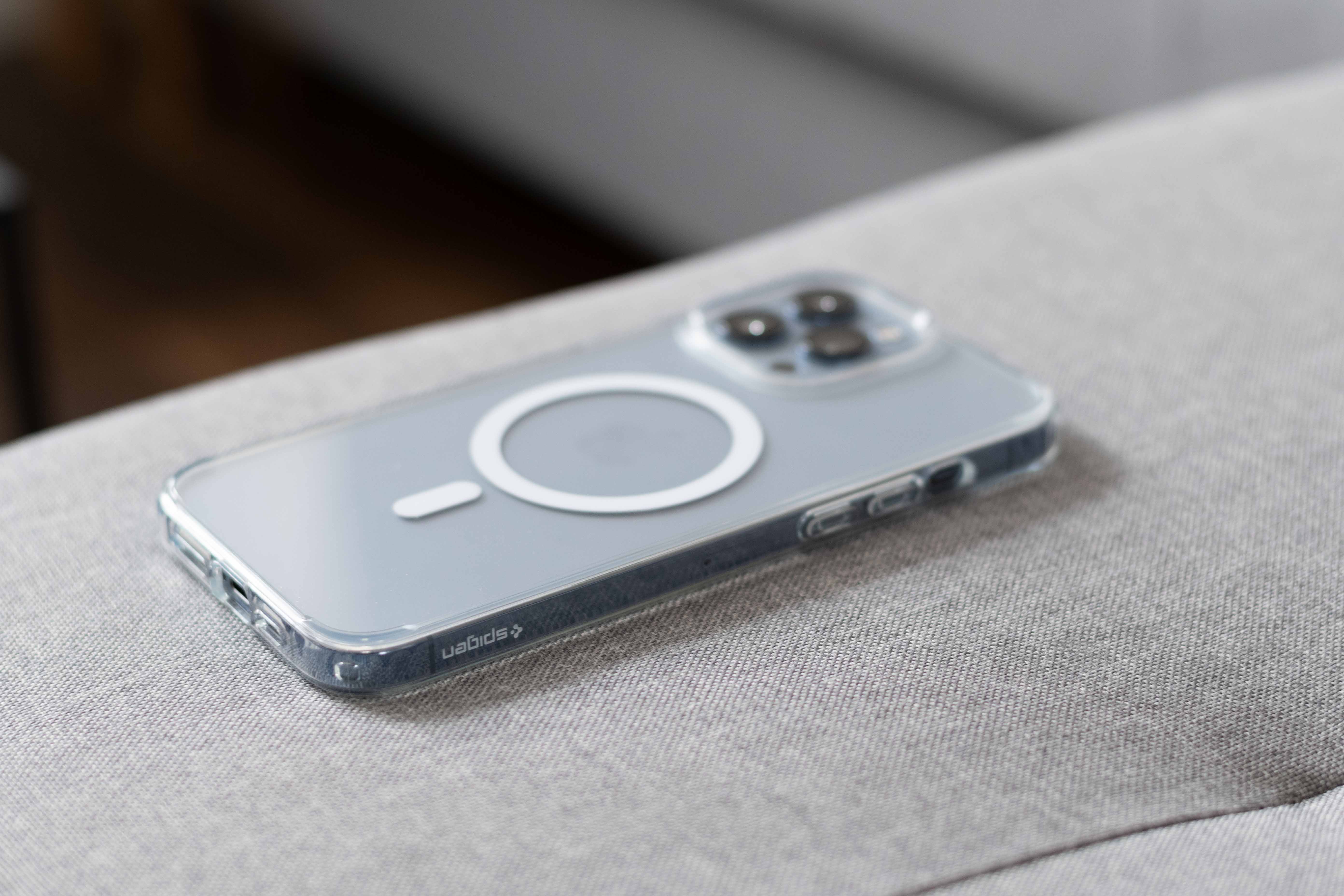 Spigen vyrobil svůj kryt Ultra Hybrid Mag z průhledného TPU a polykarbonátu, přičemž oba materiály by měly být chráněny speciální vrstvou proti žloutnutí. Kryt jako takový je poměrně tvrdý, kvůli čemuž není jeho nasazení na telefon úplně jednoduché, ale jakmile na něj padne, drží na něm jako přibitý a telefonu proto zajistí prvotřídní ochranu. Výrobci se pro něj dokonce podařil získat americký armádní certifikát odolnosti MIL-STD 810G, konkrétně pak ve verzi 516, která zahrnuje právě pády. Jen pro představu – telefon v krytu přežil 26 pádů z výšky až 1,2 metru na tvrdý podklad, což není vůbec špatný výsledek. Lví podíl mají na tomto výsledku jak materiály, ze kterých je kryt vyroben, tak i drobnosti, které jeho funkčnost zlepšují. Na mysli mám například vzduchové “polštářky” umístěné v rozích krytu, které Spigen označuje jako Air Cushion Technology a které mají sloužit právě k tlumení nárazů při případných pádech. Tyto polštářky jsou přitom umístěny uvnitř rámečku krytu, takže si jich ve výsledku skoro ani nevšimnete, ale přesto se na ně můžete spolehnout. Zkrátka prvek, který potěší.