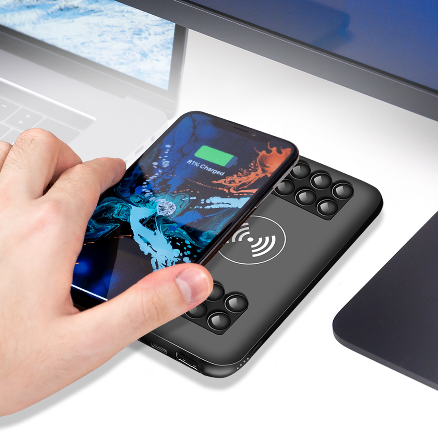 Nepřetržité nabíjení smartphonu bezdrátově zajistí praktické přísavky, pomocí kterých mobil uchytíte na bezdrátové zóně a nesklouzne se vám. Zařízení je vhodné pro všechna zařízení, která disponují technologii Qi. Zásobníkem elektrické energie je zabudovaná Li-ion baterie s kapacitou 10 000 mAh. Powerbank je šikovný, elegantní a vejde se do kapsy tak jako běžný smartphone, čili na objemu zavazadel vám nepřidá.