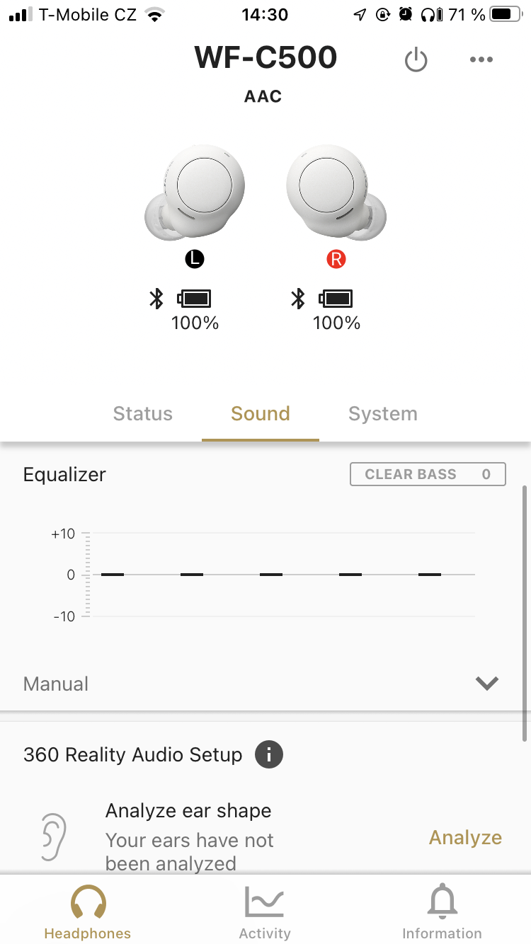 Stejně jako u spousty dalších současných modelů, i v tomto případě sluchátka doprovází ještě aplikace pro chytré telefony. V tomto případě jde o aplikaci Headphones Connect a možností nabízí hned celou řadu. Kromě klasického přehledu o stavu nabití sluchátek, provozovaném režimu a základního ovládání aplikace dále nabídne plnohodnotný a plně upravovatelný pětipásmový ekvalizér, díky kterému si může zvukový profil sluchátek upravit každý dle svojí potřeby a svých zvukových preferencí, dále je zde nástroj na analýzu zvukovodu pro potřeby 360 stupňového přehrávání (tyto funkce ovšem vyžadují vytvoření uživatelského profilu Sony), funkce sledování aktivity a další standardní možnosti mezi které patří aktualizace firmwaru, on-line návod k použití či registrace sluchátek pro potřeby dalšího servisu apod. V porovnání s jinými doprovodnými aplikacemi je ta od Sony daleko komplexnější a nabízí více možností, jak si zvuk sluchátek personalizovat pro svou vlastní potřebu.