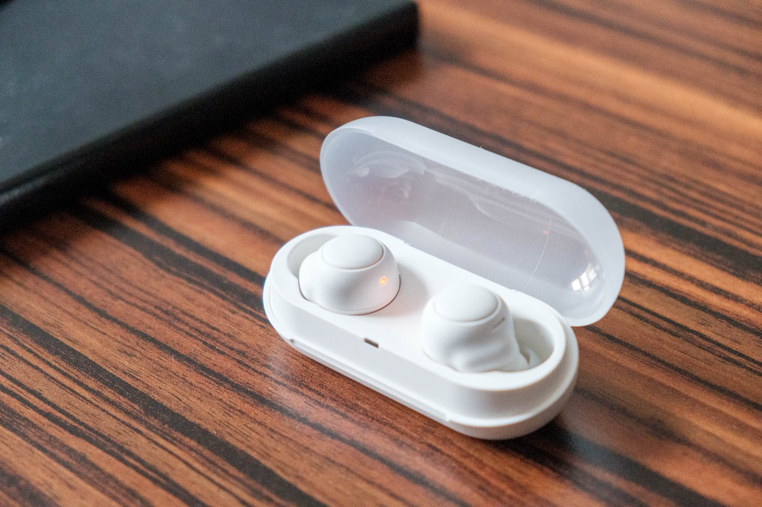 Za zmínku stojí nabíjecí krabička, která je také plastová, avšak působí velice bytelně. Její víko je z poloprůhledného plastu, při jehož zavření prosvítají notifikační diody a je tedy vidět, jak se sluchátka nabíjí. Pant zavíracího mechanismu je navíc velmi silný a relativně tuhý, krabička tak opravdu působí, že něco vydrží. Její otevření a zavření je navíc doprovázeno velice příjemným cvaknutím.