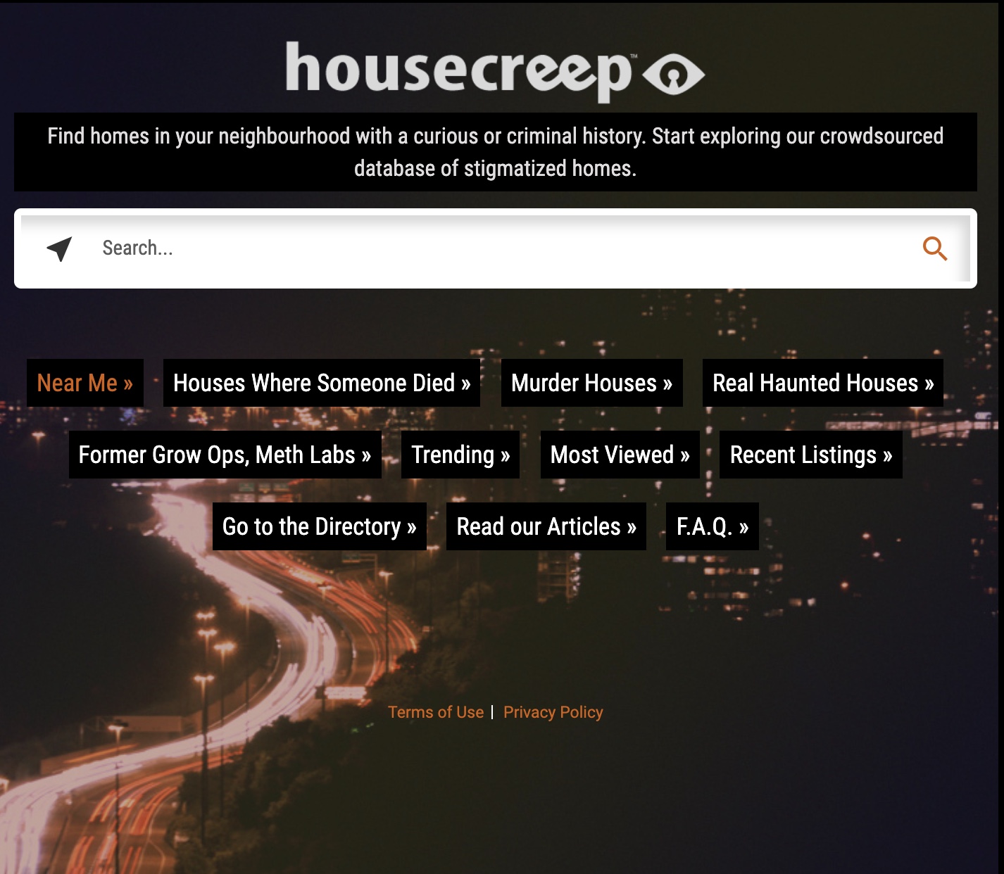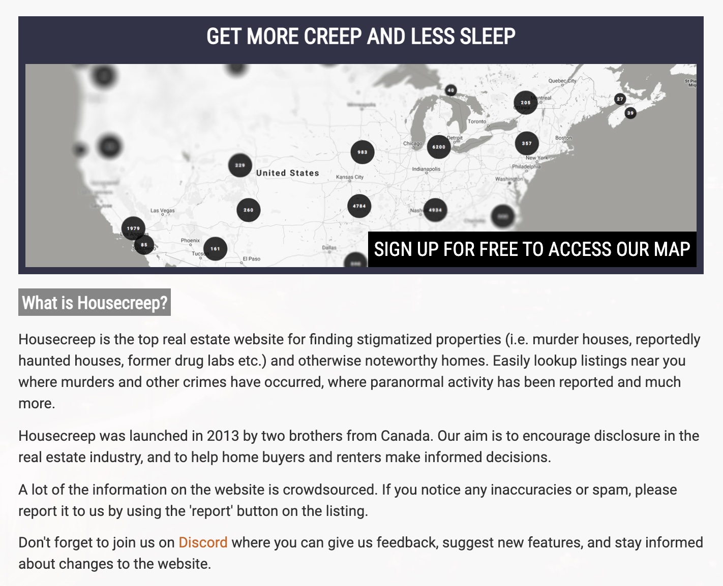 Na závěr našeho článku zde máme něco pro milovníky tajemna, záhad, a strašidelné atmosféry. Na webu Housecreep můžete virtuálně prozkoumat oblasti, ve kterých se událo něco děsivého, strašidelného či záhadného. Česká republika sice v seznamu míst chybí, i tak zde ale najdete řadu velmi zajímavých informací a fotografií. Vyhledávání můžete provádět manuálně, na mapě, nebo vybírat z adresáře.