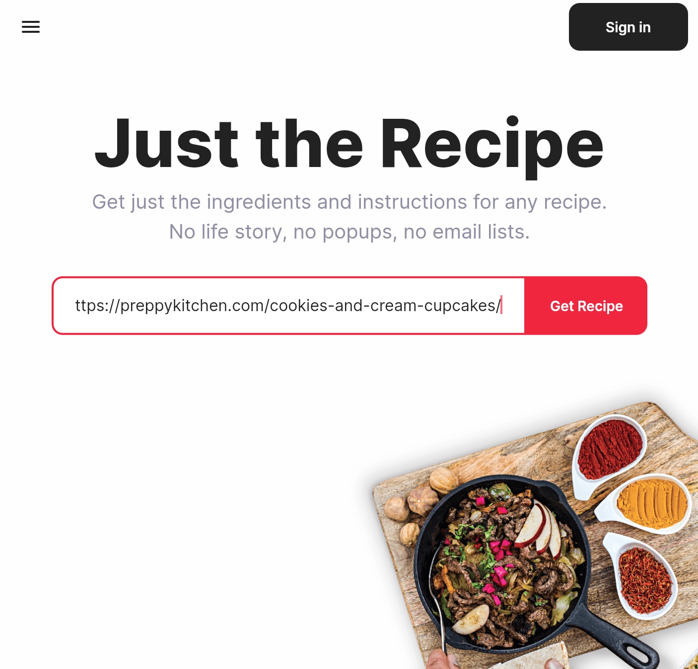 Na webech s recepty se často setkáváme s tím, že než se dostaneme k seznamu potřebných ingrediencí a k samotnému postupu, musíme se prokousat často poměrně dlouhým vyprávěním. Pokud patříte mezi ty, kteří jdou při vaření rovnou k věci, můžete si jednoduše zkopírovat URL stránky, na které se nachází příslušný recept, a vložit ji na web Just the Recipe. Ihned získáte přesně to, co potřebujete.