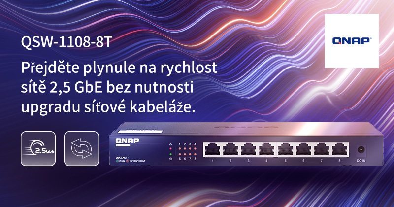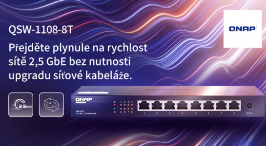 Tisková zpráva: Společnost QNAP® Systems, Inc., přední inovátor v oblasti výpočetních, síťových a úložných řešení, dnes představila osmiportový 2,5GbE neřízený switch – QSW-1108-8T. Switch QSW-1108-8T nabízí osm portů 2,5GbE, nastavení plug-and-play, automatickou detekci a blokování smyčky a funkce auto-negotiation, a jedná se o cenově výhodné řešení pro modernizaci vysokorychlostní sítě pro domácnosti a podniky.