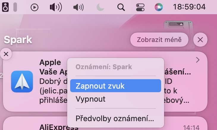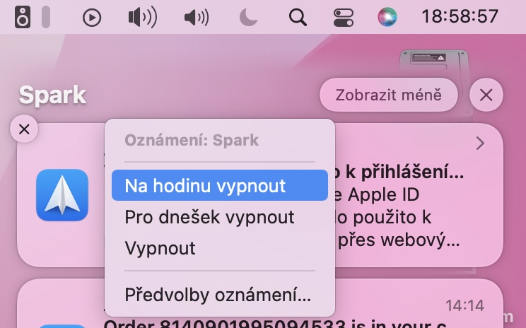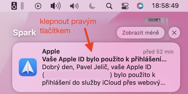 Na jedné z předchozích stránek jsme si řekli, že oznámení v macOS Monterey dokáží rozpoznat notifikace, které vás mohou potenciálně obtěžovat, a nabídnout vám jejich ztišení. Tato možnost ztišení je ale samozřejmě k dispozici u jakýchkoliv jiných oznámení. Pokud se rozhodnete oznámení z nějaké aplikace ztišit, tak si můžete vybrat ztišení na hodinu, do konce dne, anebo úplné vypnutí. Chcete-li oznámení z nějaké aplikace vypnout, tak se přesuňte do oznamovacího centra, a poté na notifikaci z konkrétní aplikace klepněte pravým tlačítkem. Následně už si jen stačí dle potřeby vybrat Na hodinu vypnout, Pro dnešek vypnout nebo Vypnout. Veškerá oznámení pak můžete spravovat v  -> Předvolby systému -> Oznámení a soustředění.