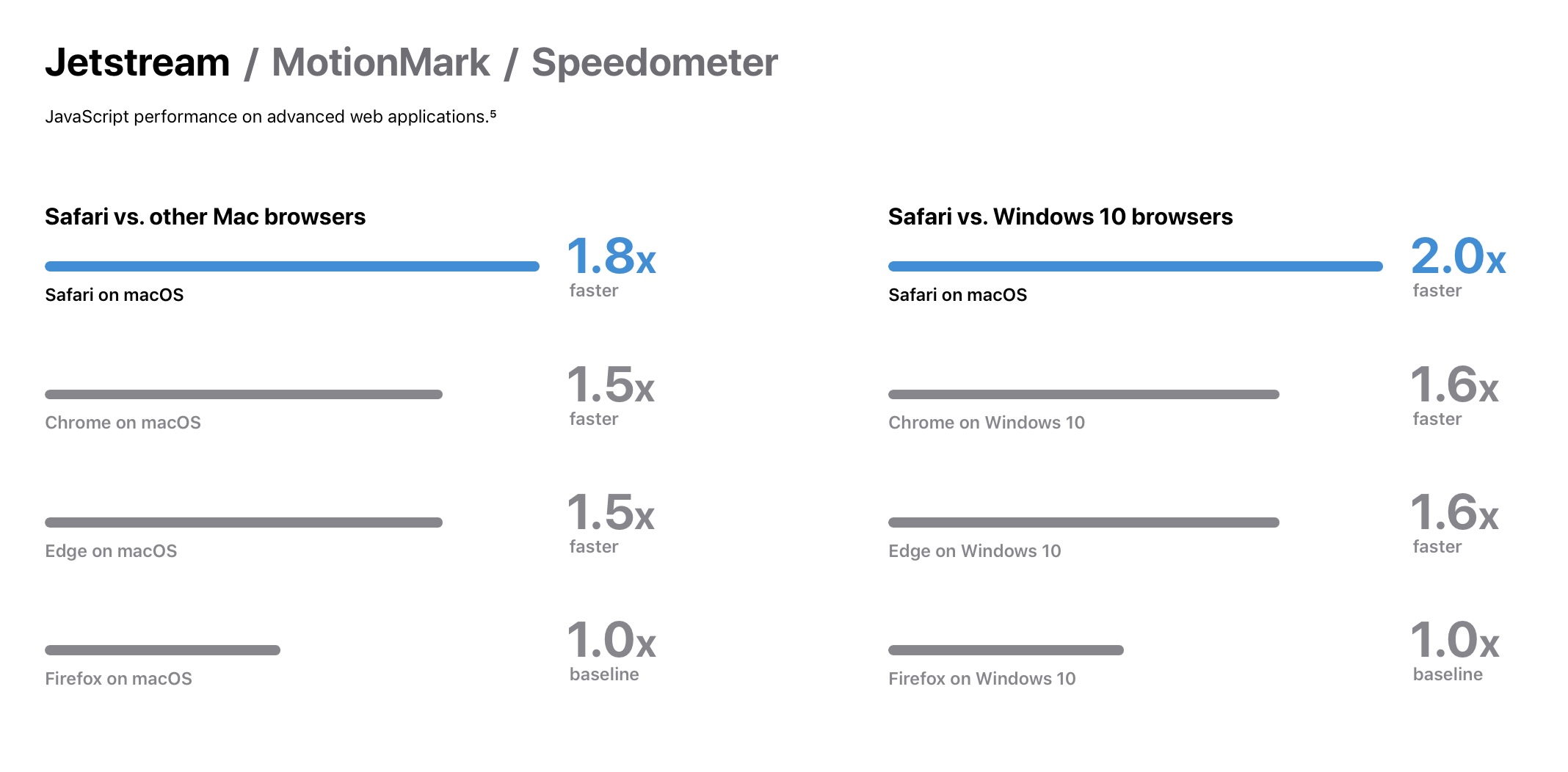 Opravdu dlouhou dobu internetem kolovaly všemožné názory, ve kterých jste se mohli dočíst, že je prohlížeč Chrome nejrychlejší na světě. Pravdou je, že když Google prohlížeč Chrome uvedl, tak byl určitě nejrychlejší a nejpokrokovější. Postupem času se ale změnilo hodně věcí a Chrome už za nejrychlejší považovat nelze. Podle dostupných informací a dat je Safari oproti Chrome celkově rychlejší, v určitých případech relativně výrazně. Samozřejmě ale mohou existovat odvětví, ve kterých zase naopak dominuje Chrome.
