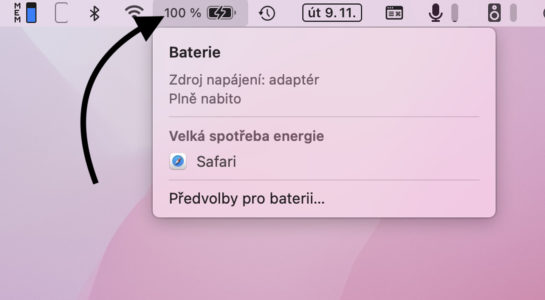 - Dále zde aktivujte možnost Zobrazit stav baterie v řádku nabídek.