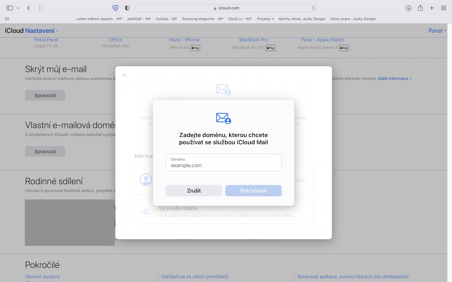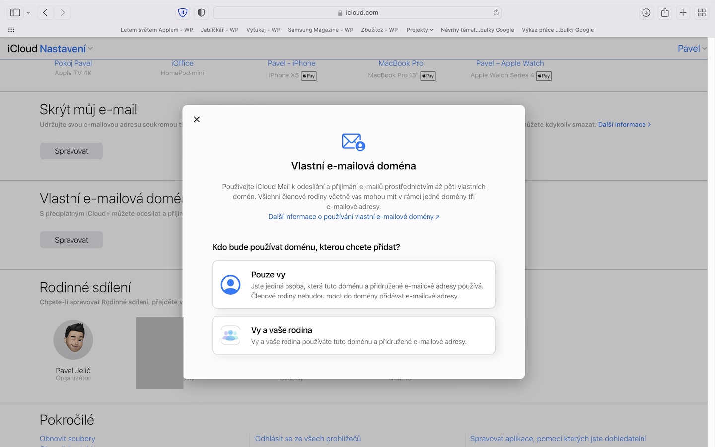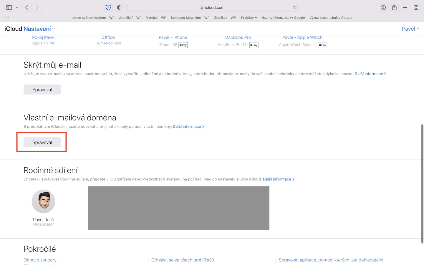 Většina z nás má e-mailovou adresu vedenou například u Seznamu, Googlu či u dalších jiných poskytovatelů. V prakticky všech případech je tedy e-mailová adresa složená z vybraného názvu či jména a za zavináčem se pak nachází doména poskytovatele. S příchodem iCloud+ si však můžete vytvořit vlastní e-mailovou doménu a následně do ní můžete přidat i ostatní členy z rodinného sdílení, což je naprosto skvělé. Samozřejmě je ale nutné, abyste konkrétní doménu vlastnili. Následně stačí přejít na stránky icloud.com, kde se přihlaste, následně přejděte do Nastavení účtu a v sekci Vlastní e-mailová doména klepněte na Spravovat.