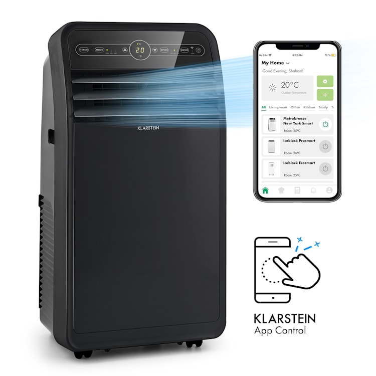 • Mobilní klimatizace umožňují nastavit si teplotu většinou od 16 – 31°C. V závislosti na jednotlivých modelech se teplotní škála může lišit. Zapínání, vypínání a nastavování teploty je komforně řešeno – pomocí dálkového ovladače. Svět technologií nám umožnil ještě inteligentnější ovládání klimatizaceprostřednictvím aplikace Klarstein, díky které můžete ovládat klimatizaci pomocí svého smartphonu.