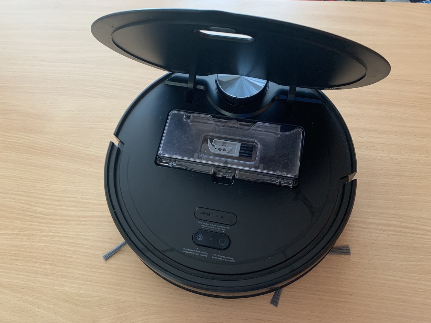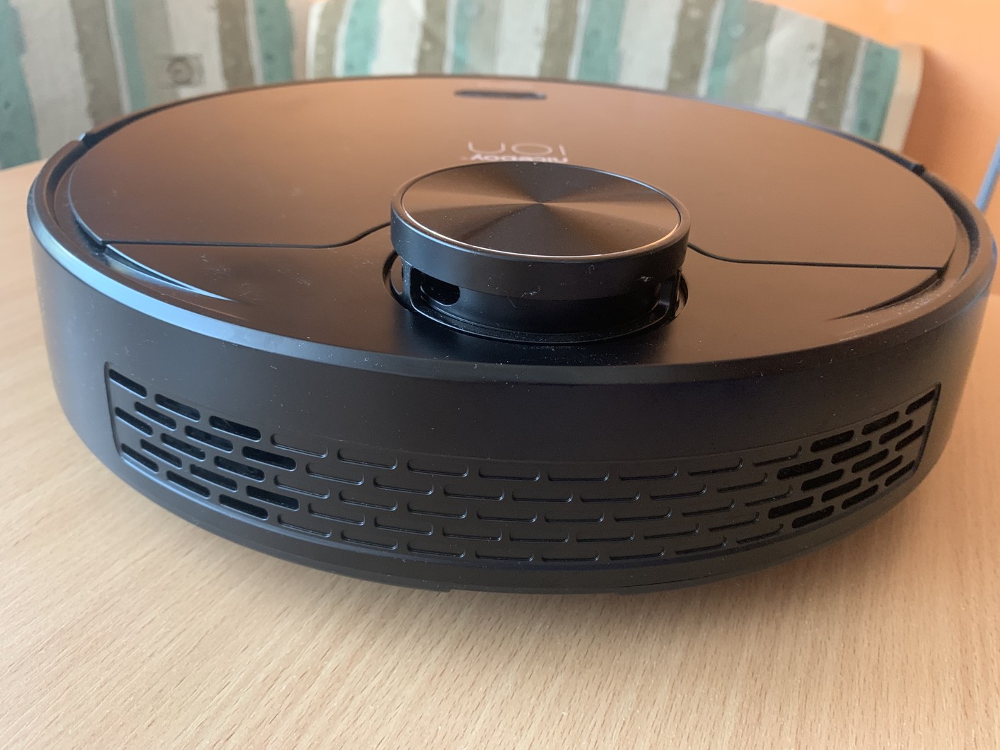 Pokud jste se v minulosti setkali s nějakým robotickým vysavačem, design vás v tomto případě rozhodně nepřekvapí. Jako snad u všech obdobných zařízení se zde setkáváme s tvarem disku. Vzhledem k potřebám stroje je tento kousek vyhotoven z plastu, ovšem i tak se dá říct, že vypadá velmi dobře. Na jeho horní straně vidíte radarový snímač, logo společnosti a dvě tlačítka, přičemž jedno je na zapnutí/vypnutí stroje, a druhé dá přístroji příkaz k návratu do nabíjecího doku. Horní část je odklopitelná a slouží k vložení nádrže na odpad nebo na vodu. Na bočních stranách narazíte na infračervené senzory, snímače kolize a vyrovnání, senzory stěny a výfukový ventil. Spodní strana patří kolečkům, kartáčkům a případně hadrům.